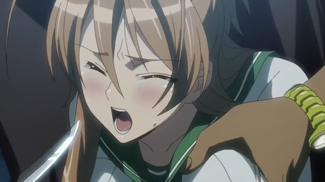 刃物を持った巨漢に捕らわれ、乳揉みされて悶える麗。