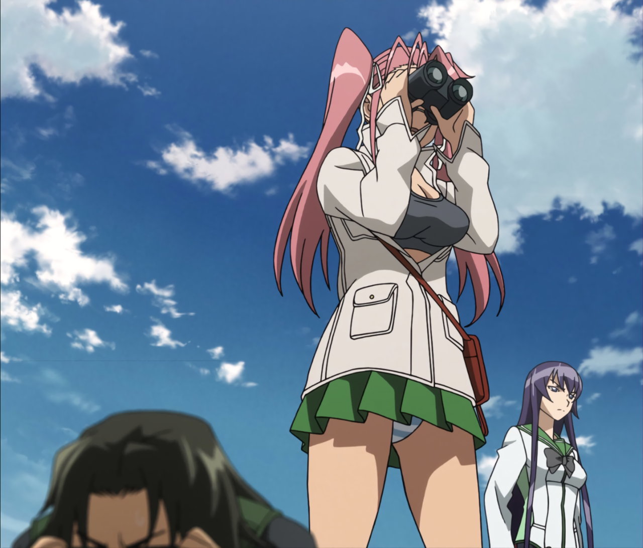双眼鏡を使う沙耶のパンチラ。