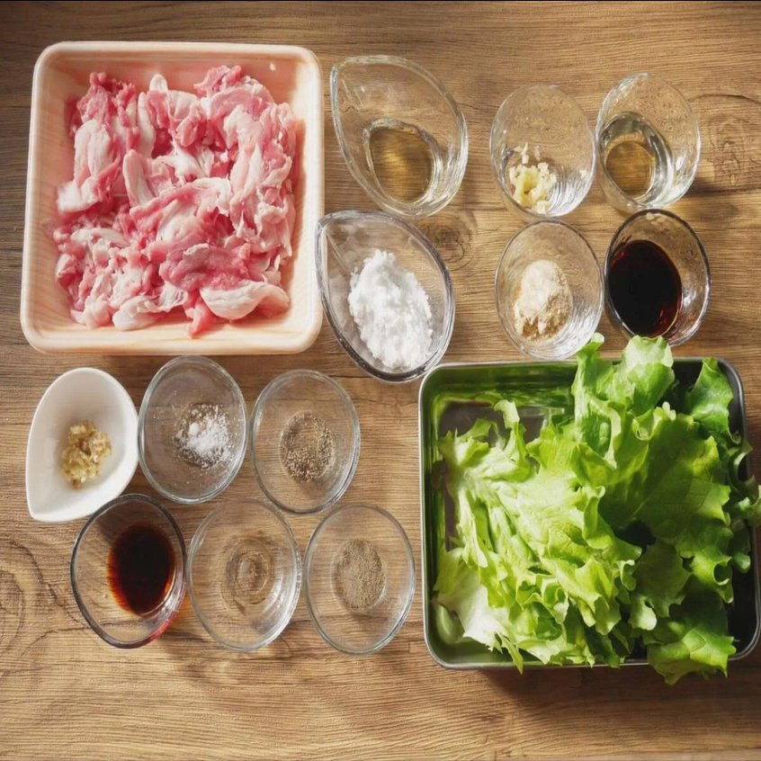 豚肉に酒、しょうゆ、おろししょうが、塩、こしょうをもみ込みます。