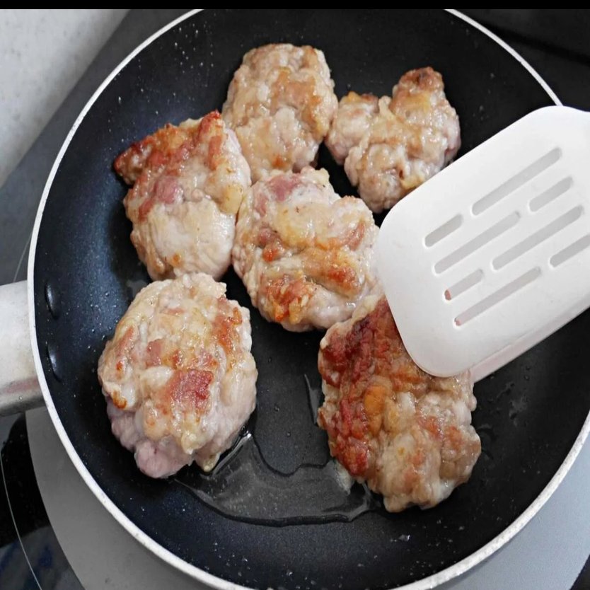 ひと口食べてみると、丸めた豚こまがホロホロと崩れ、照り焼きたれの甘辛い風味が広がります。