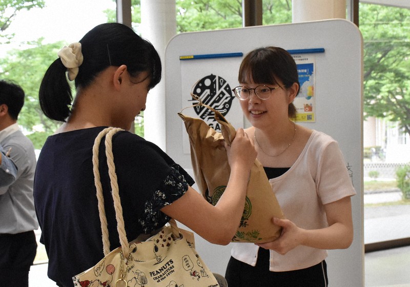 同学部3年の山下梢さん(20)も「コメは1年生の時と比べて価格が2倍ほどになっている。スーパーでは電卓を片手に買い物するほど厳しい。5キロもらったので気にせず食べられそう」と喜んだ。