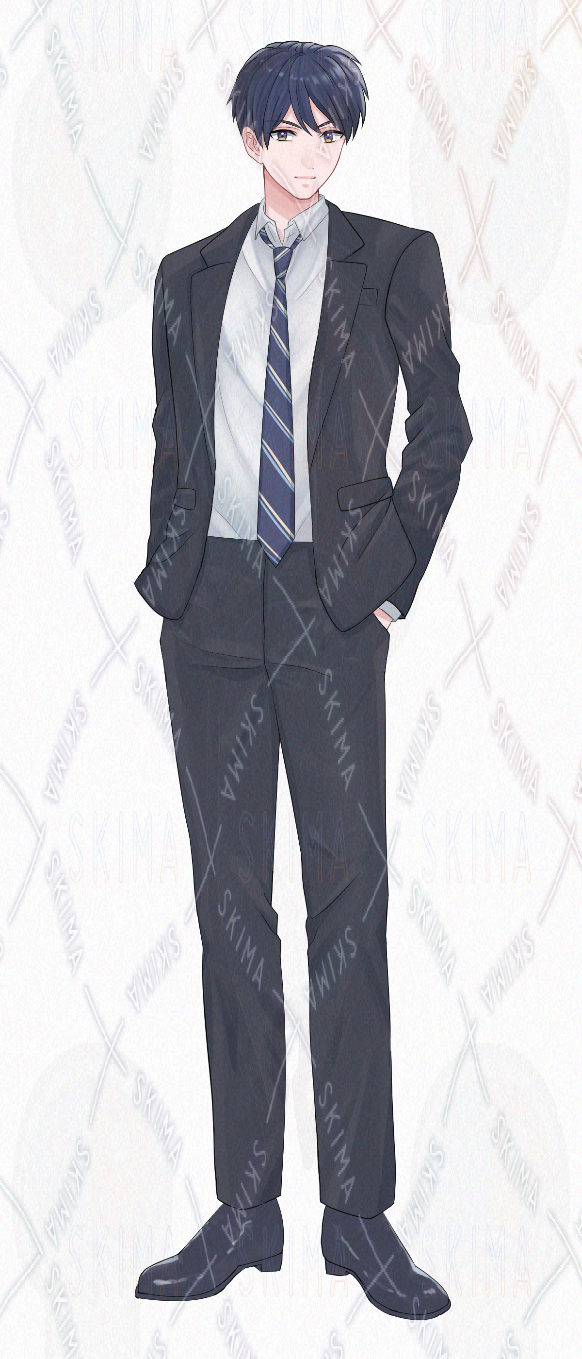 立ち絵、表情差分、男性、スーツ、黒髪