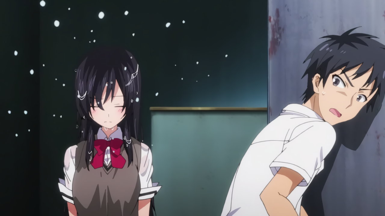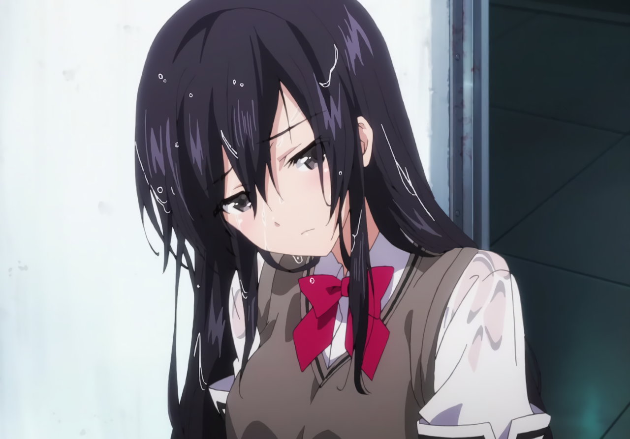 水鉄砲をぶっ掛けられ、制服濡れ濡れの砂雪・テルハ。
