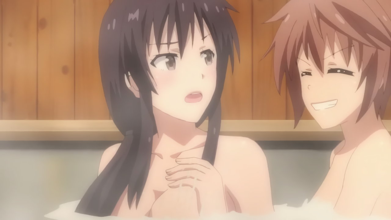 入浴中、テルハたちに乳談義を持ち掛ける砂雪。