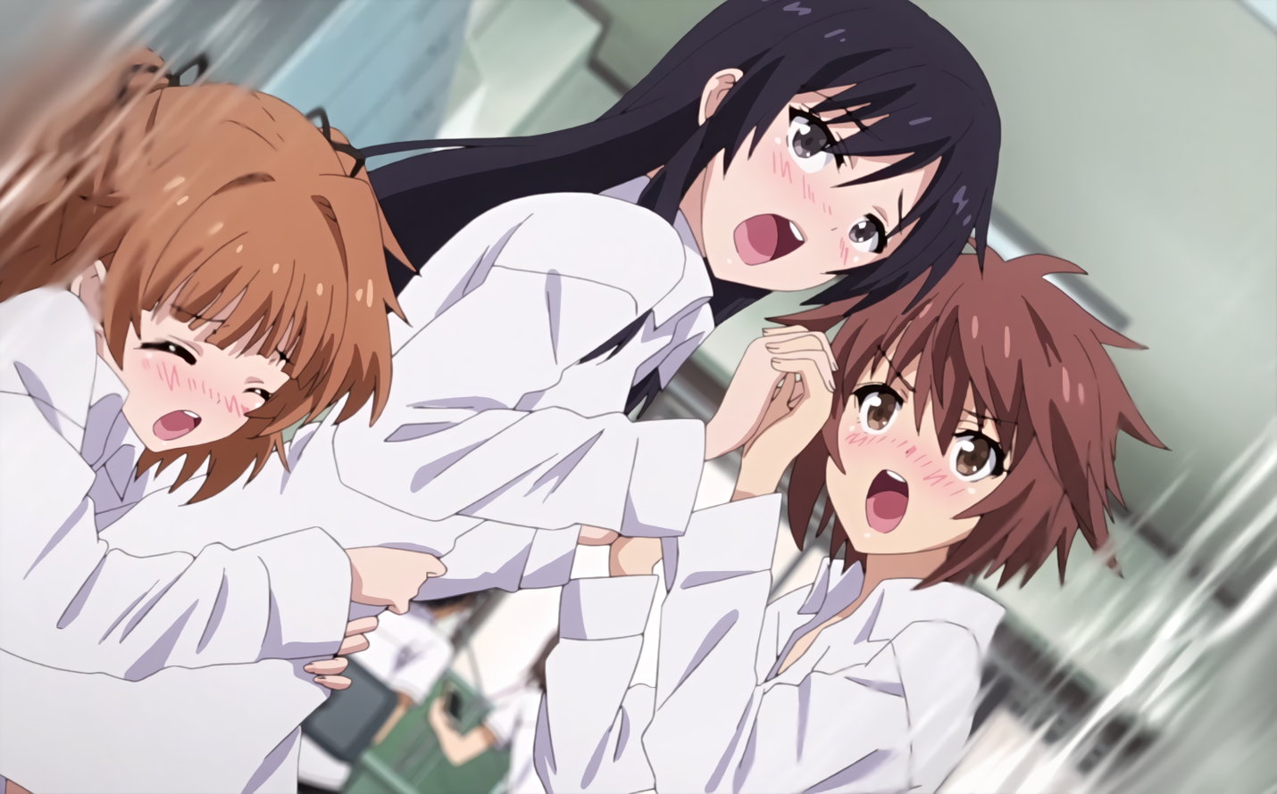 裸靴下ワイシャツ姿の砂雪、夕夏、うぐいす。