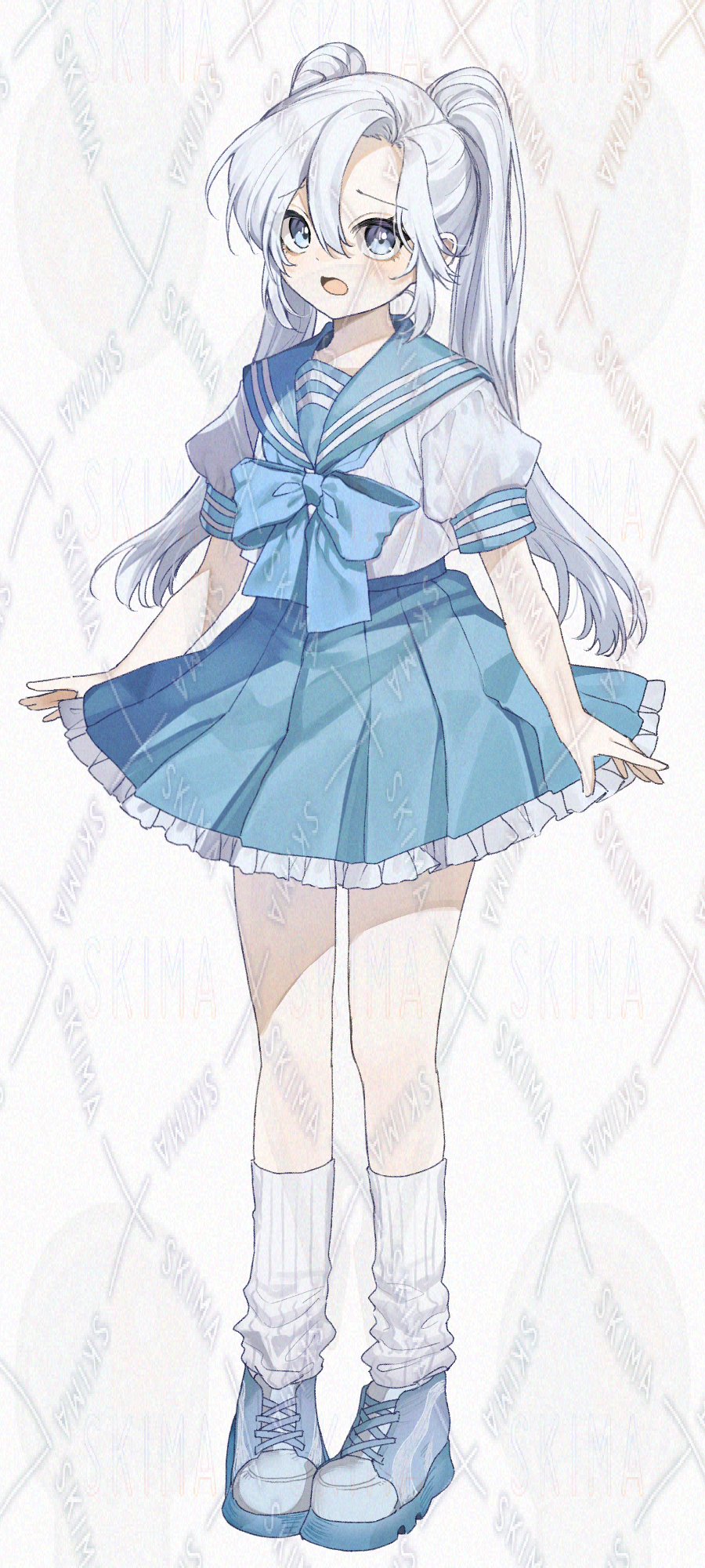 夏を想起させるような、爽やかなブルーのセーラー服を着た白髪ツインテールの女の子です。キャラ設定はご自由に。