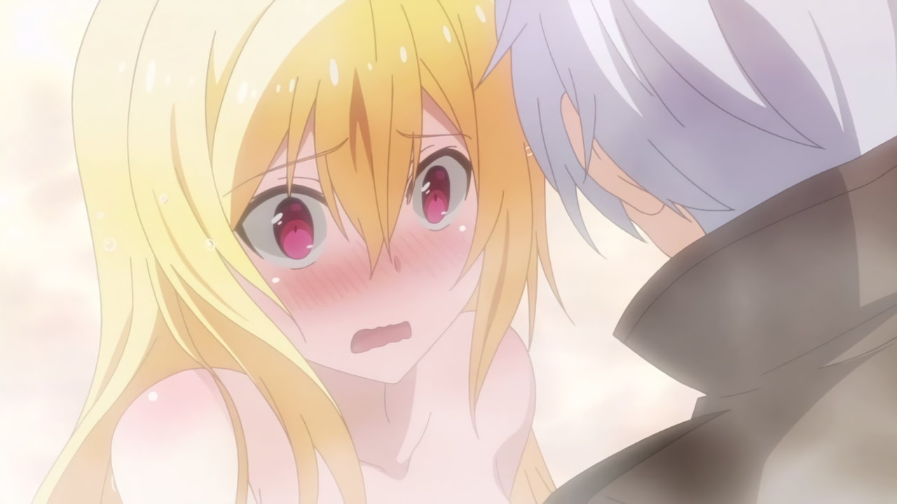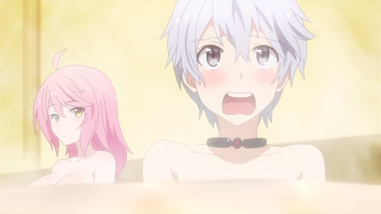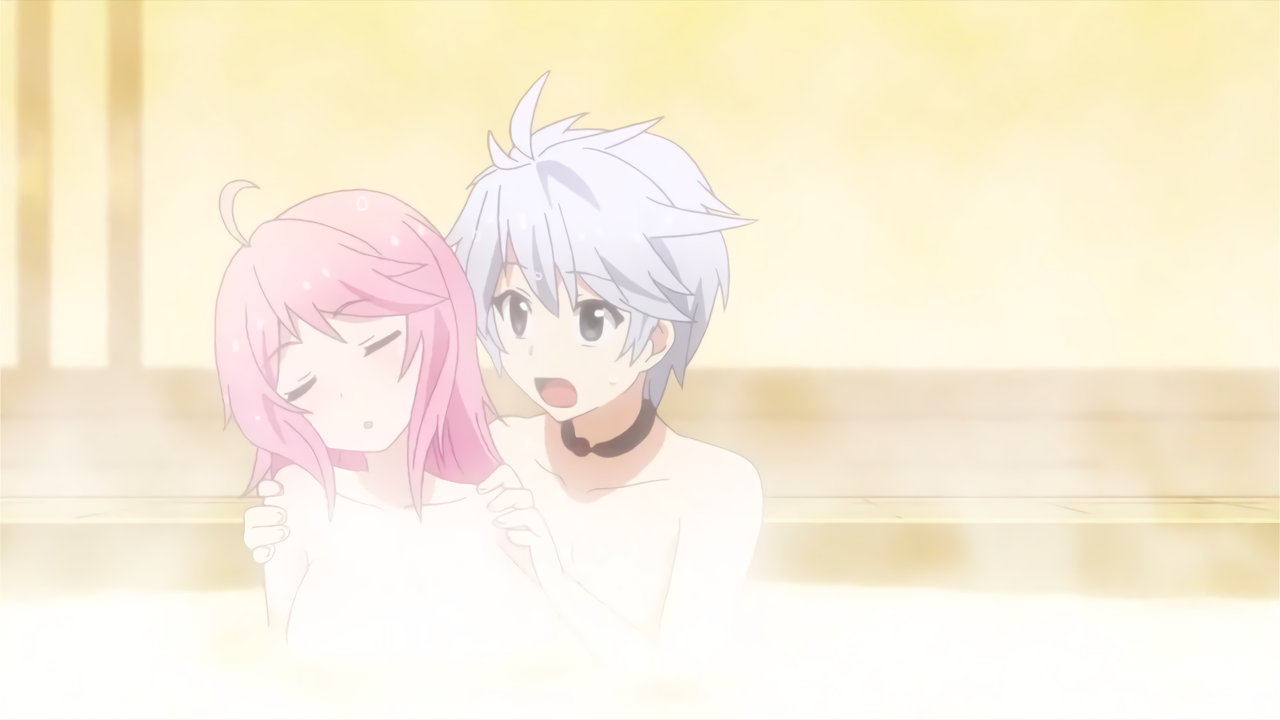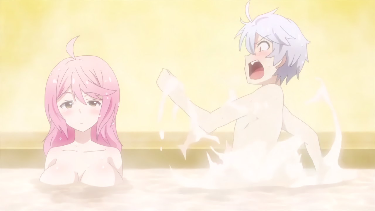 入浴中、フィルフィ―の存在に気付き狼狽するルクス。