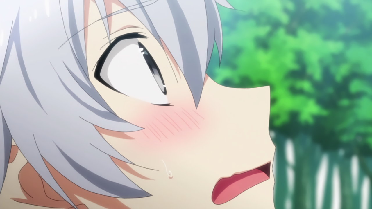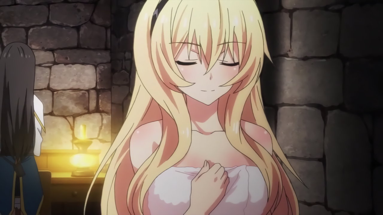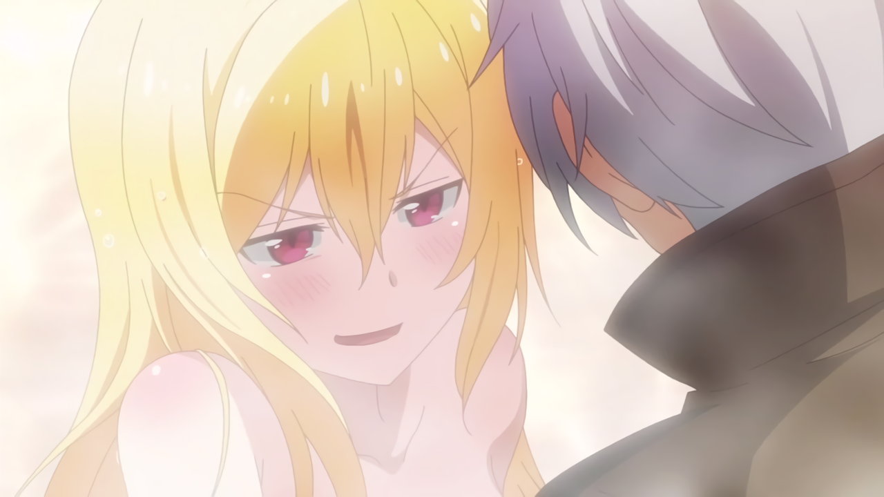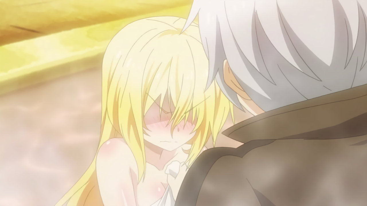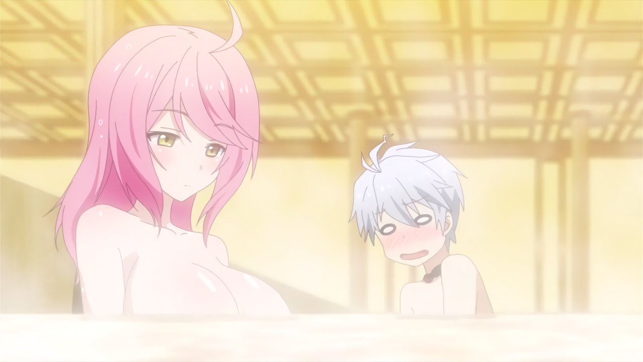 入浴中、フィルフィ―の存在に気付き狼狽するルクス。