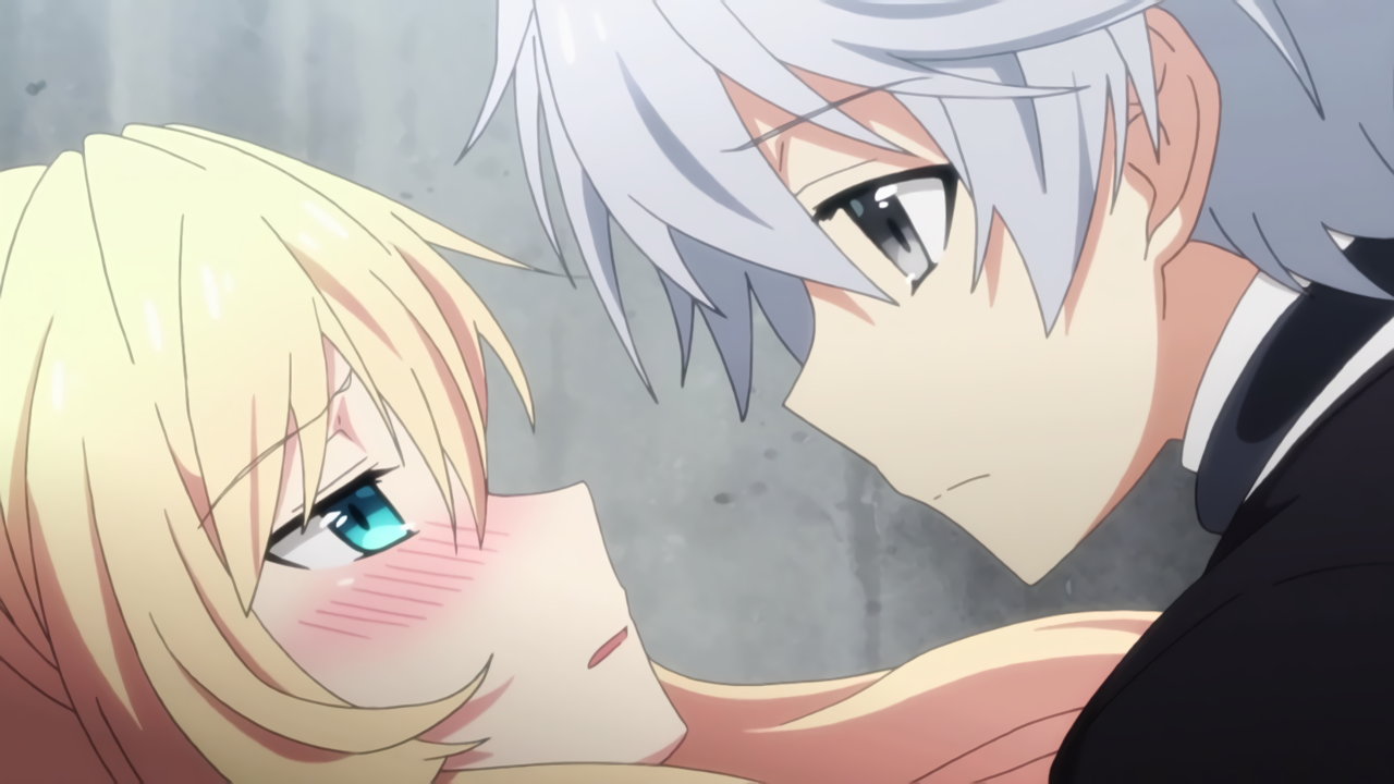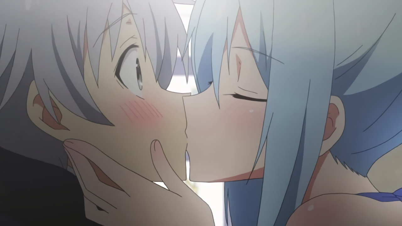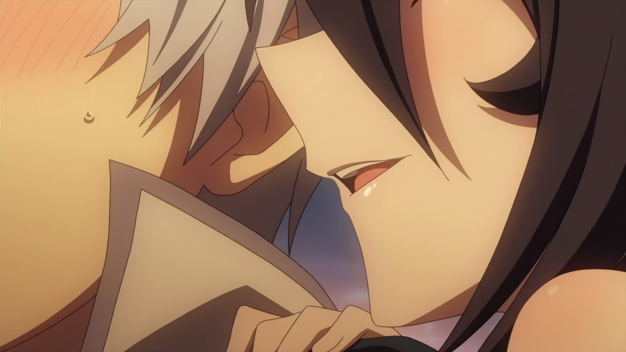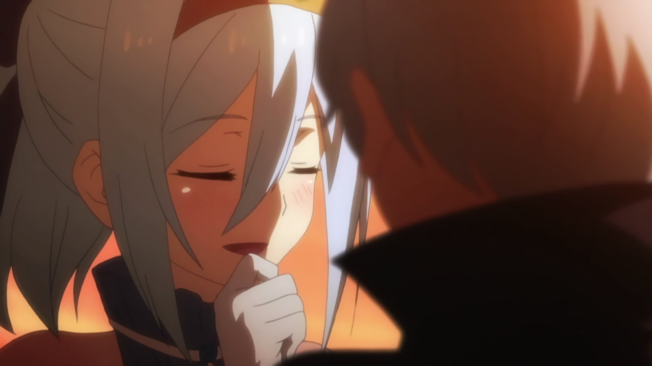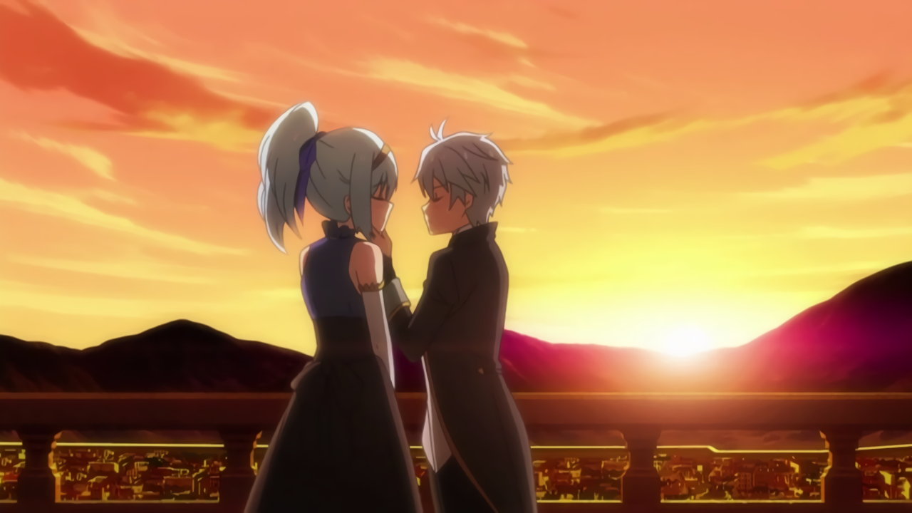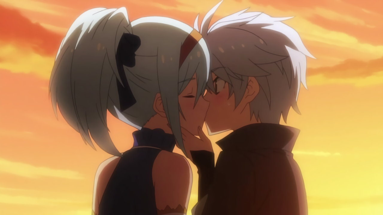 夕陽を背景に、クルルシファーにキスするルクス。