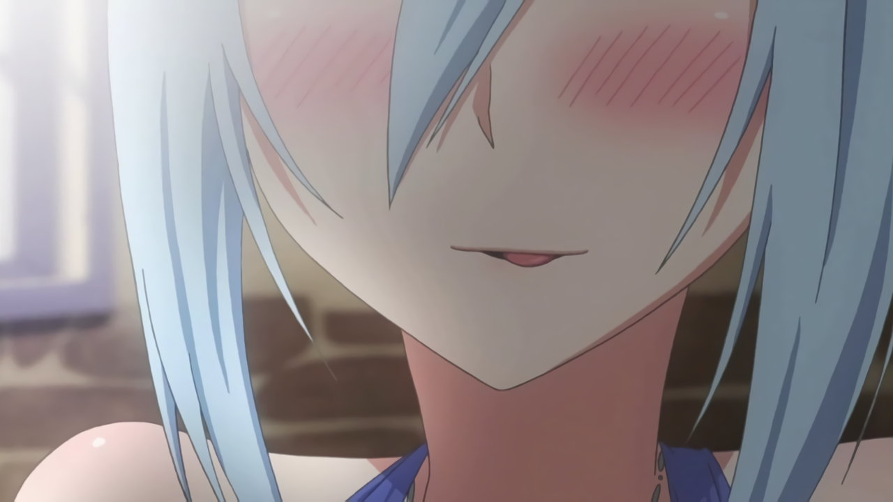 ルクスに褒められて、赤面するリーシャ。