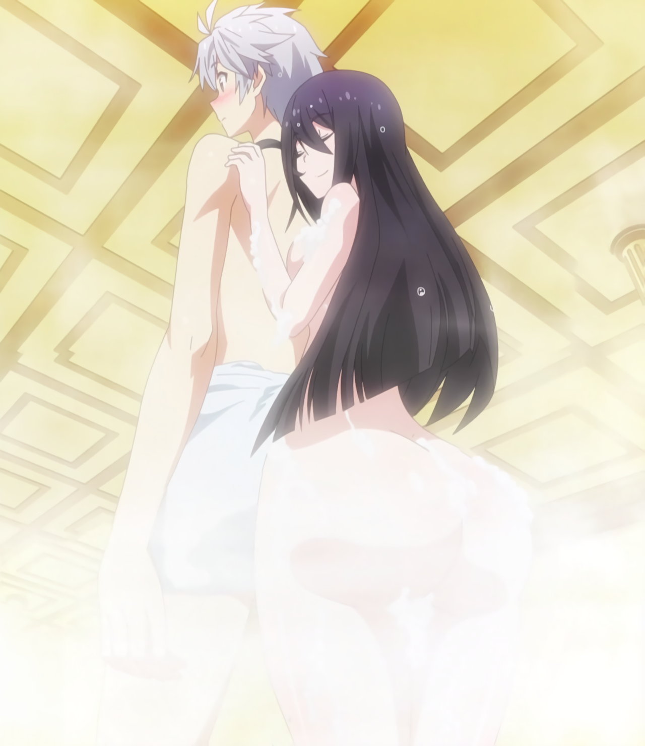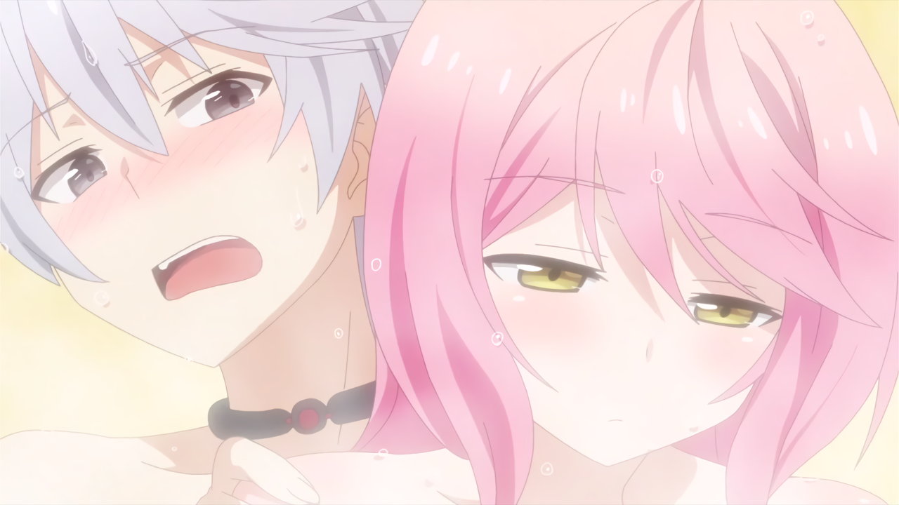 浴場にて、全裸のリーシャを押し倒すルクス。