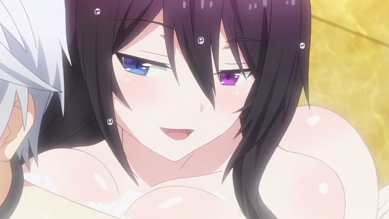 浴場でルクスに乳房密着洗体ソーププレイ中の夜架。