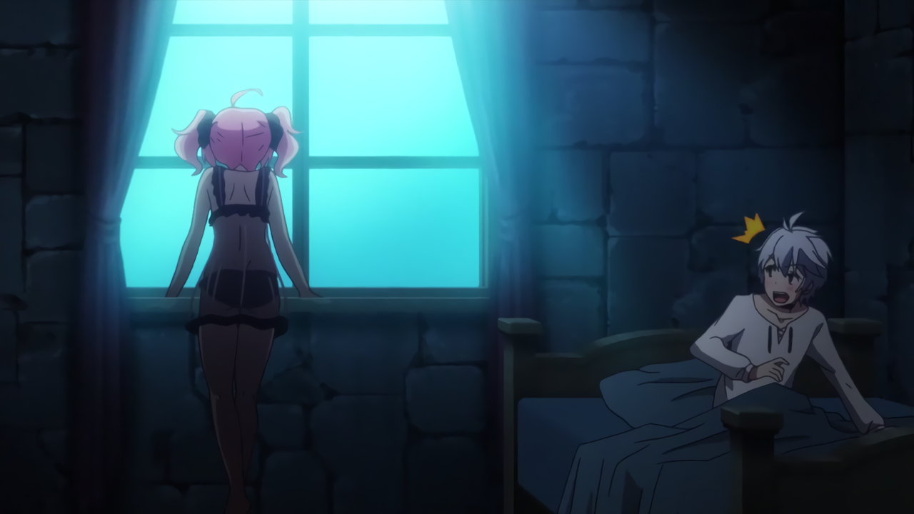 パンツ丸見えの透け透けエロネグリジェを着たフィルフィ―に気付くルクス。