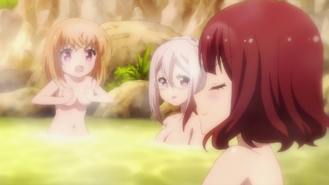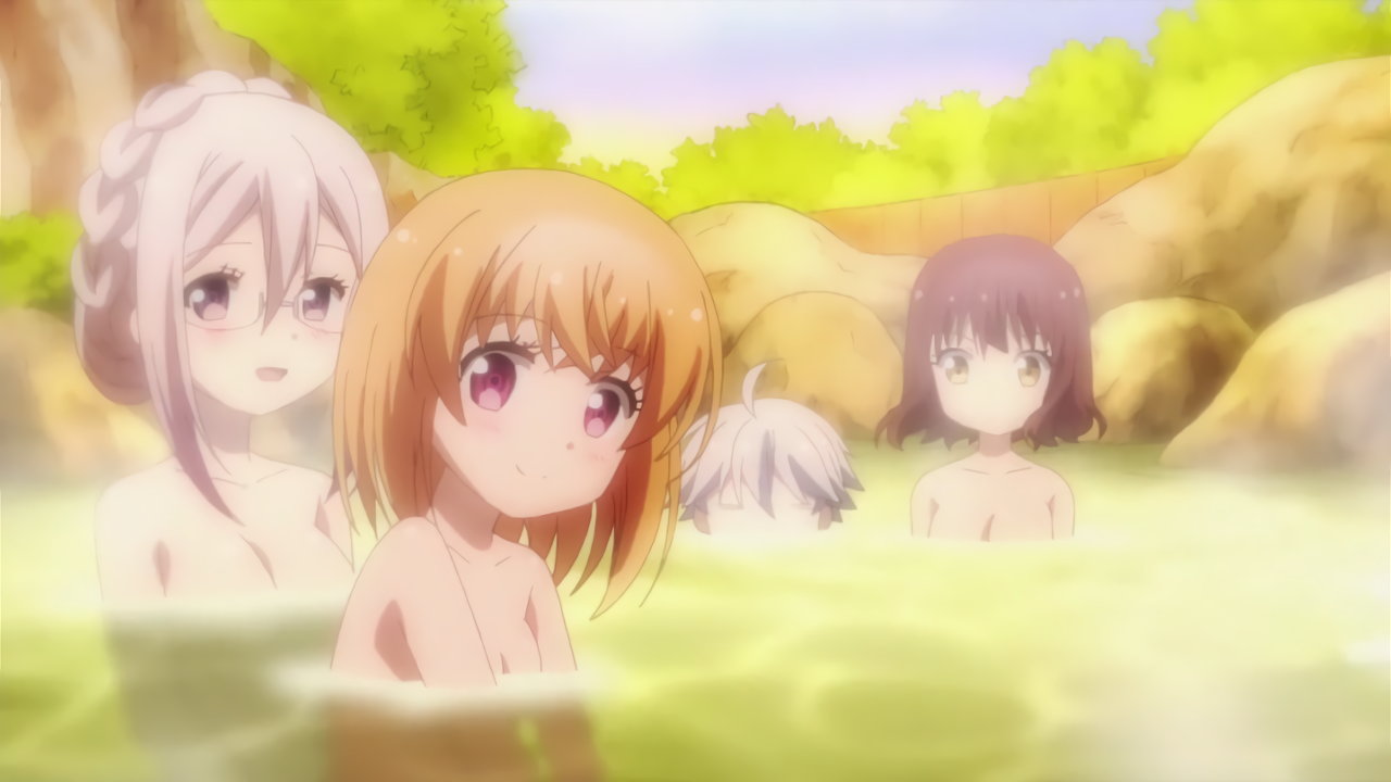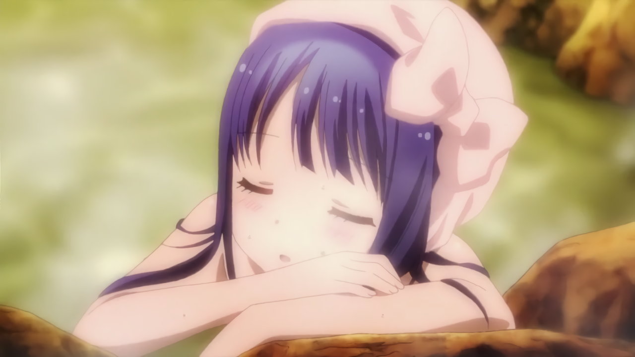 温泉入浴中の瑠璃、杏、牡丹、響、蓮。