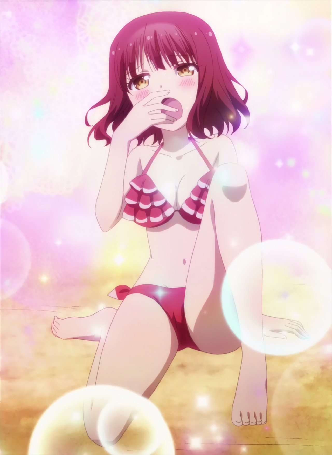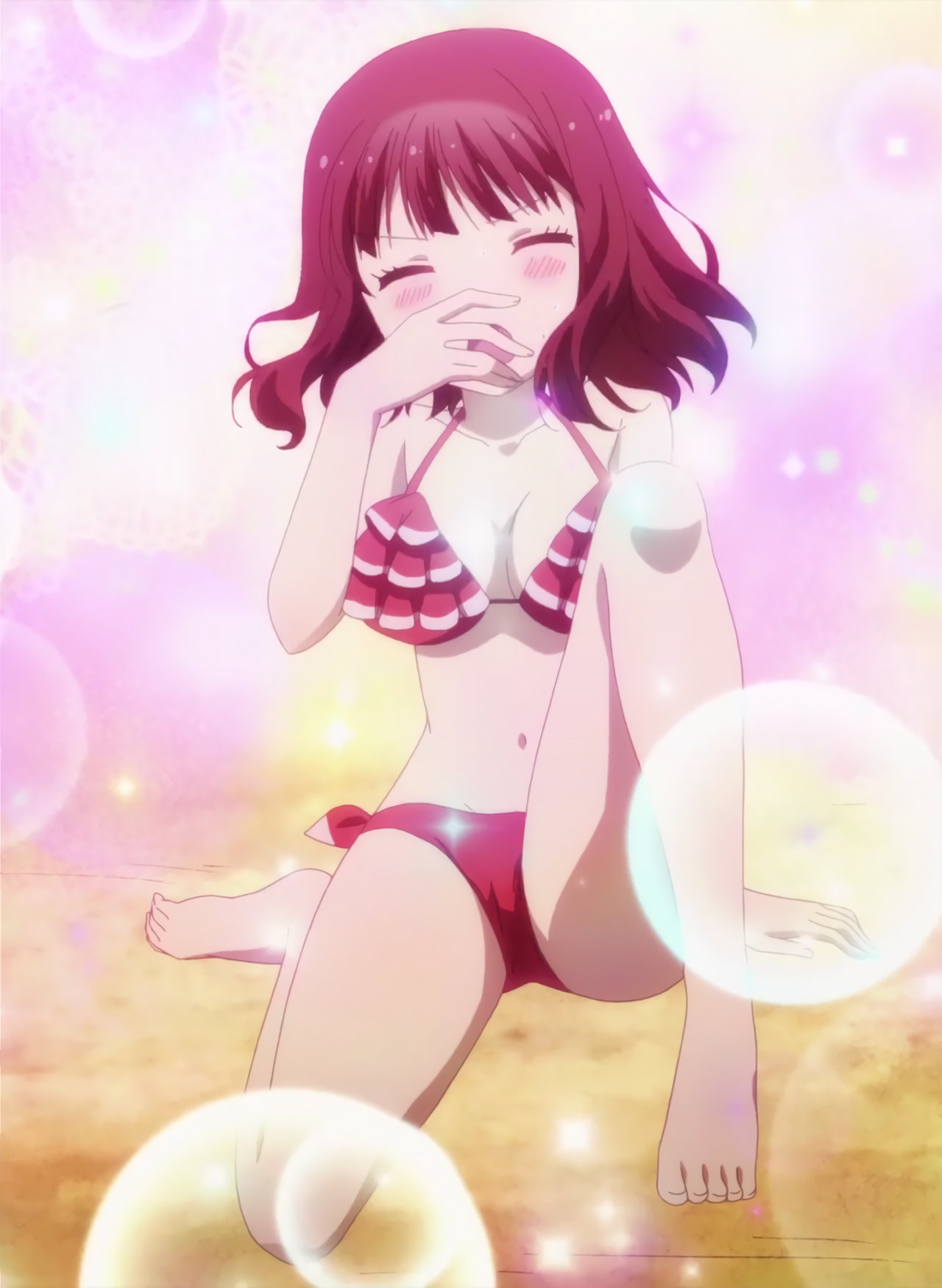 水着姿の杏、牡丹、瑠璃、響、蓮。