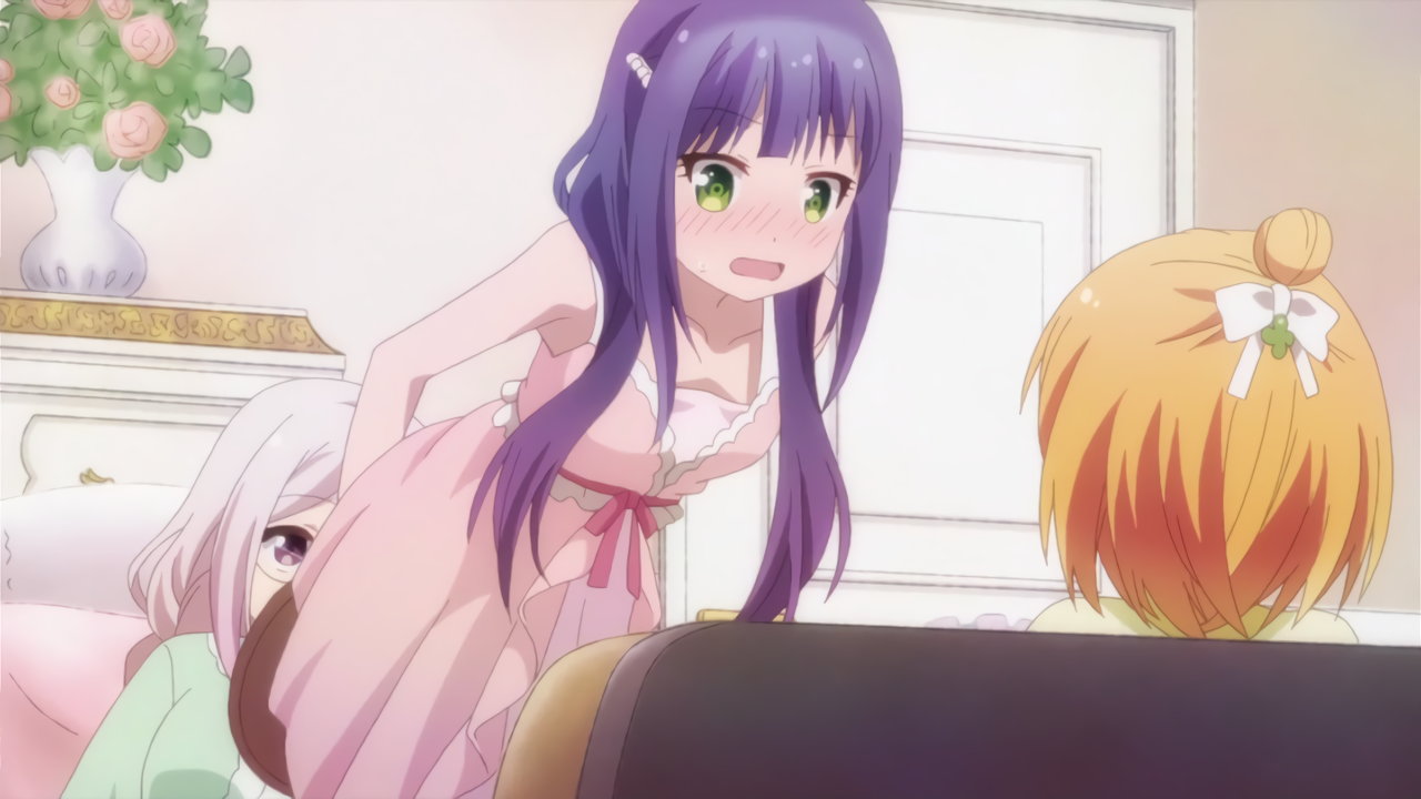 下着の好みについて杏に言及され、赤面する瑠璃。