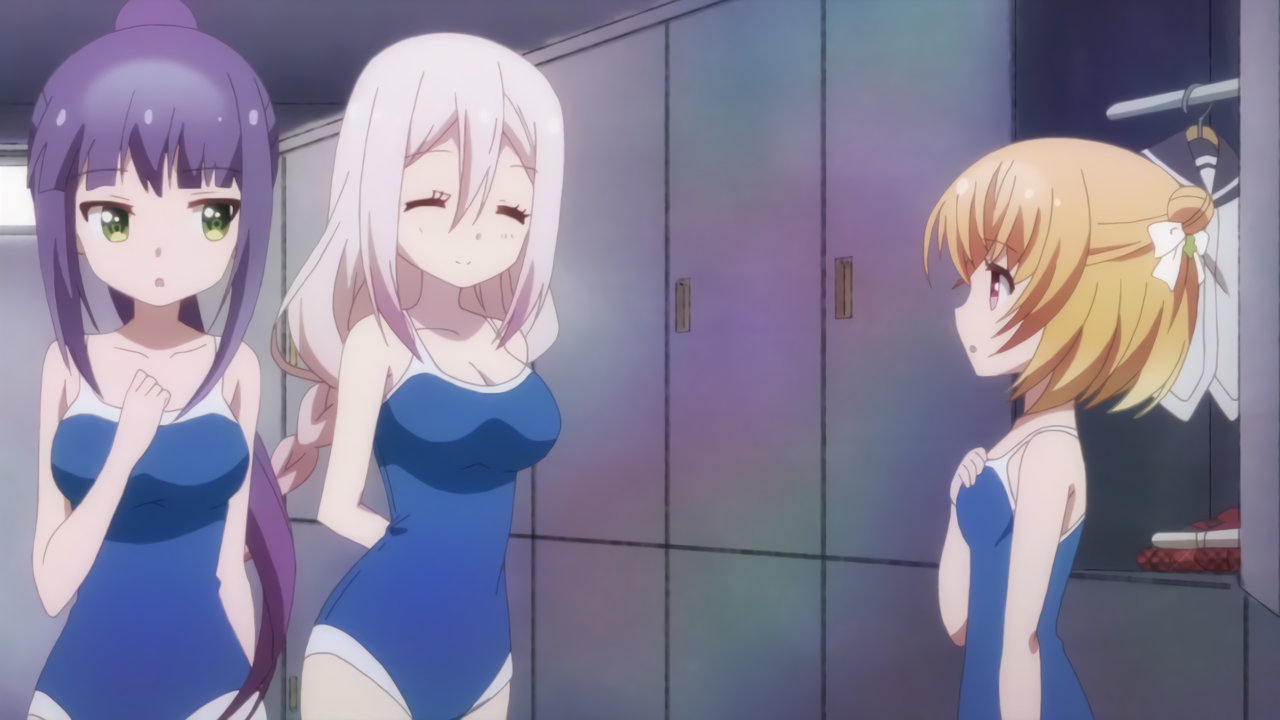 スクール水着に着替え中の女子生徒たち。