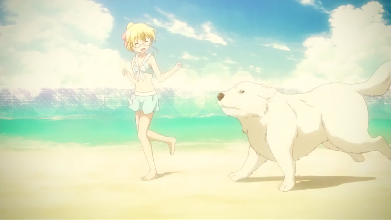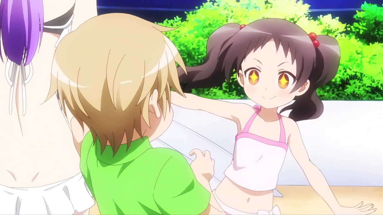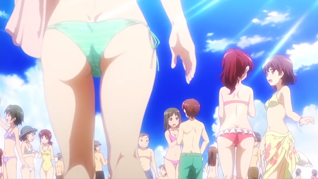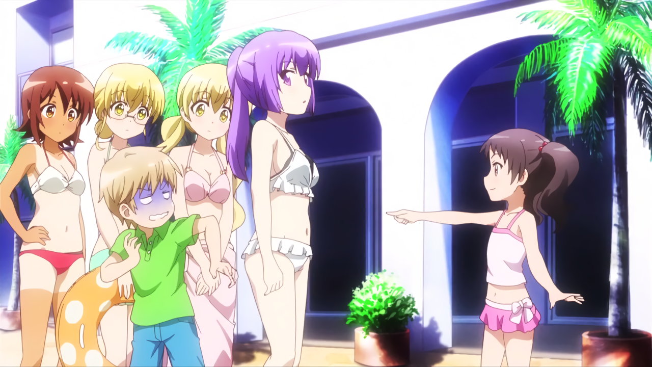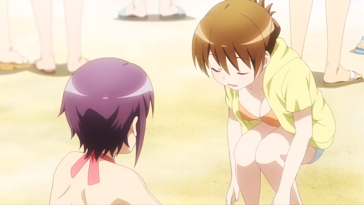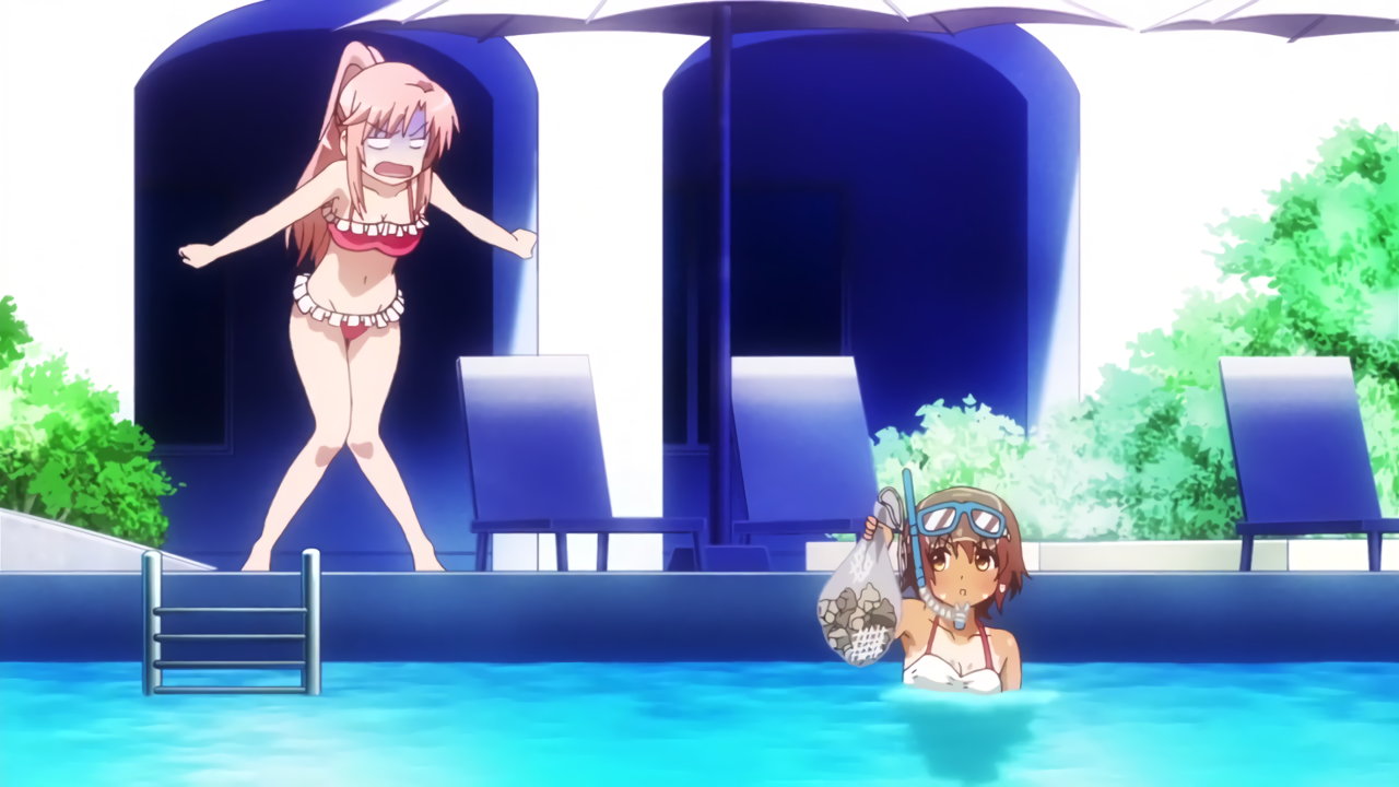 水着姿の葉子たちと、優を追い回す桜。