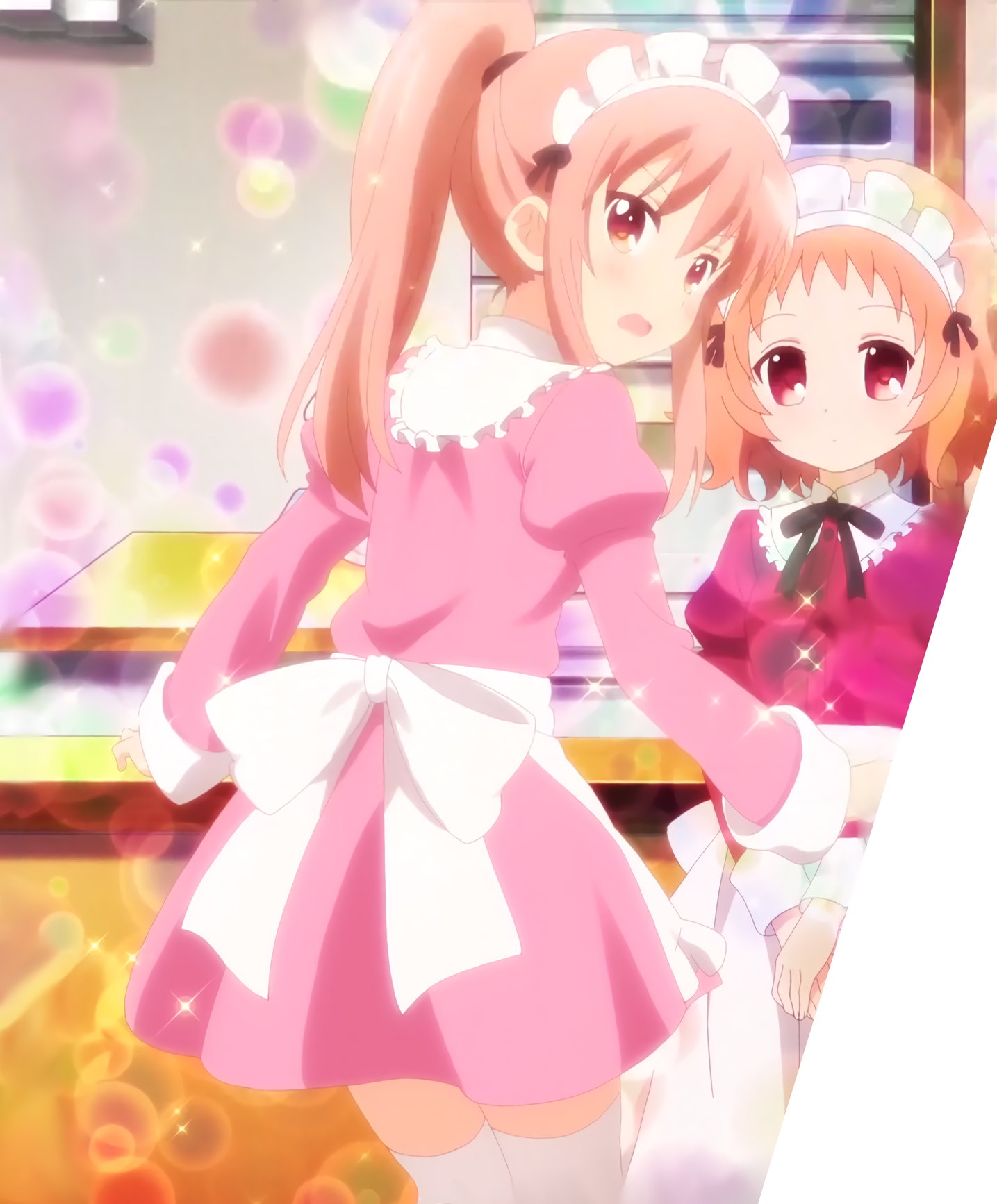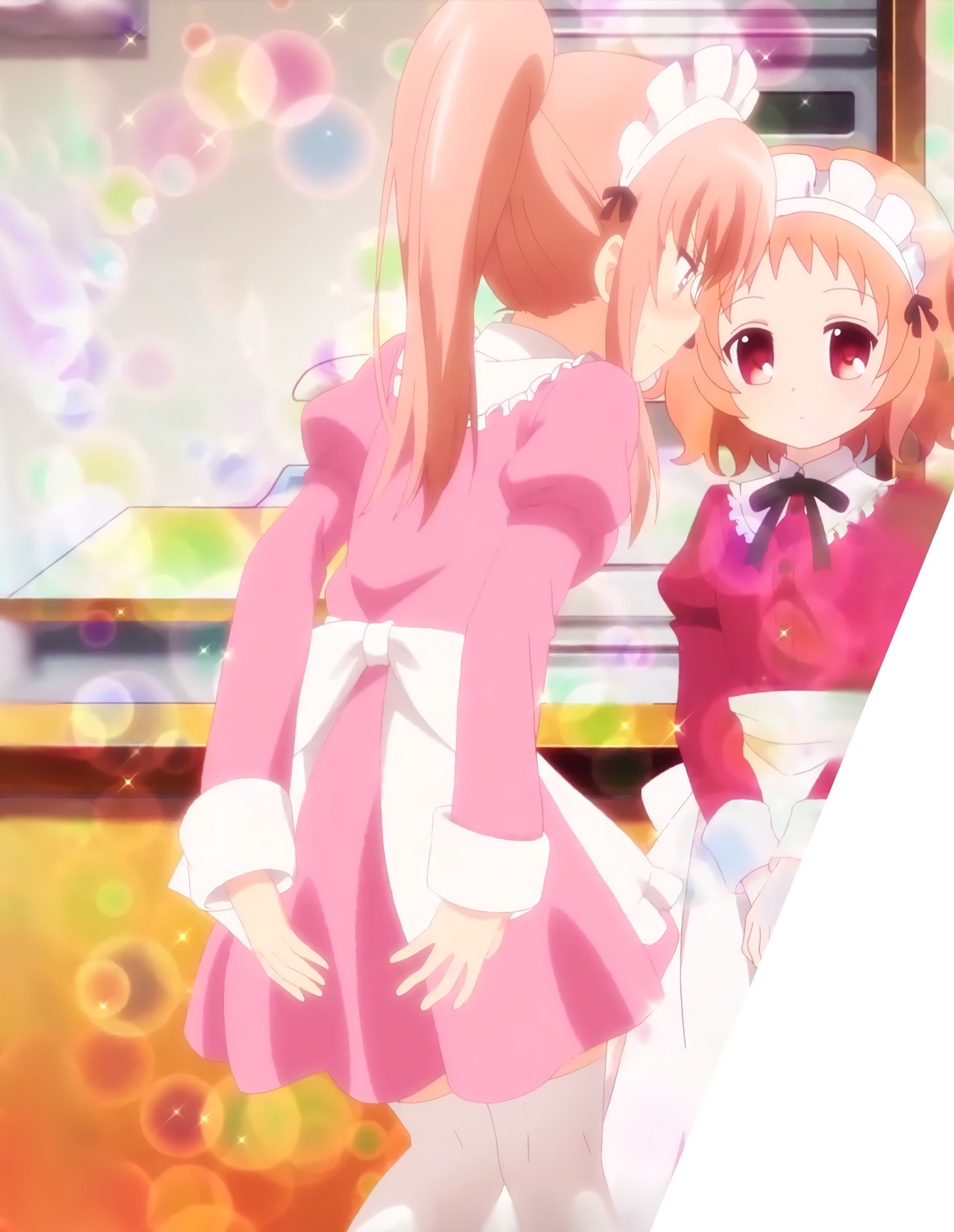 恥じらいながら尻を押さえる、給仕服を着た芹奈。