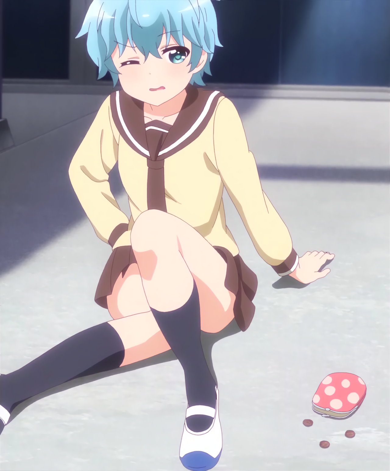 尻餅を搗き、太腿を見せる小芽。
