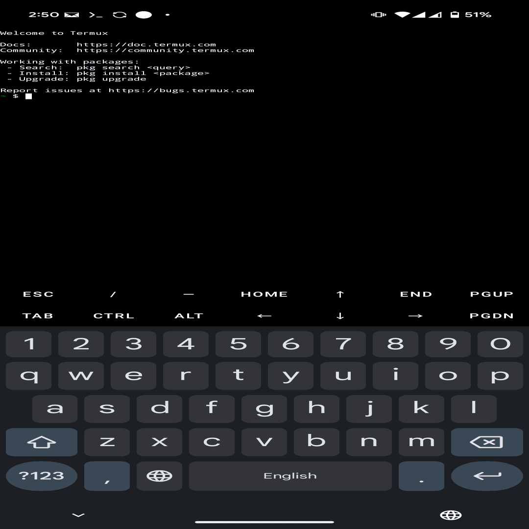 インストール後、アプリを開くと黒い画面にカーソルが点滅しているはずです。この瞬間、あなたのスマホは本格的なLinux環境に変貌しました。