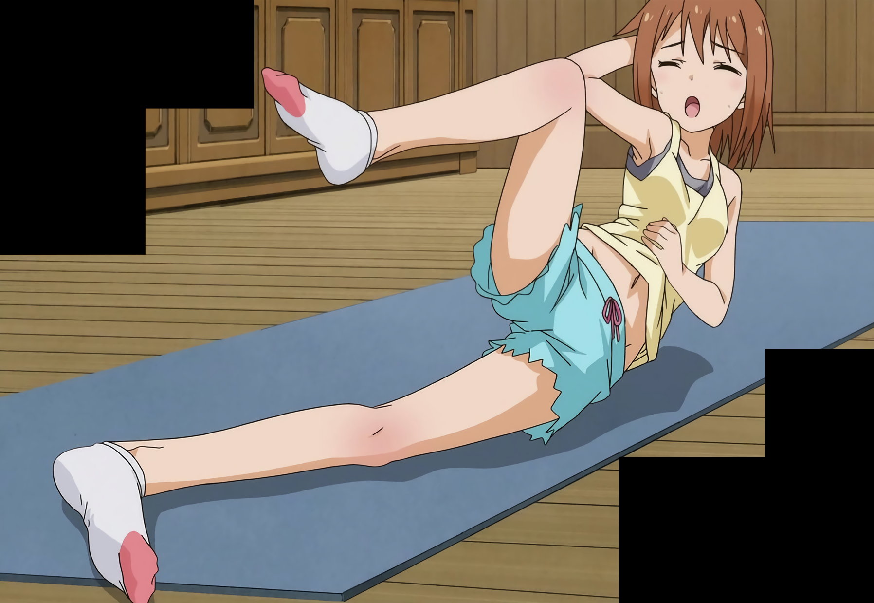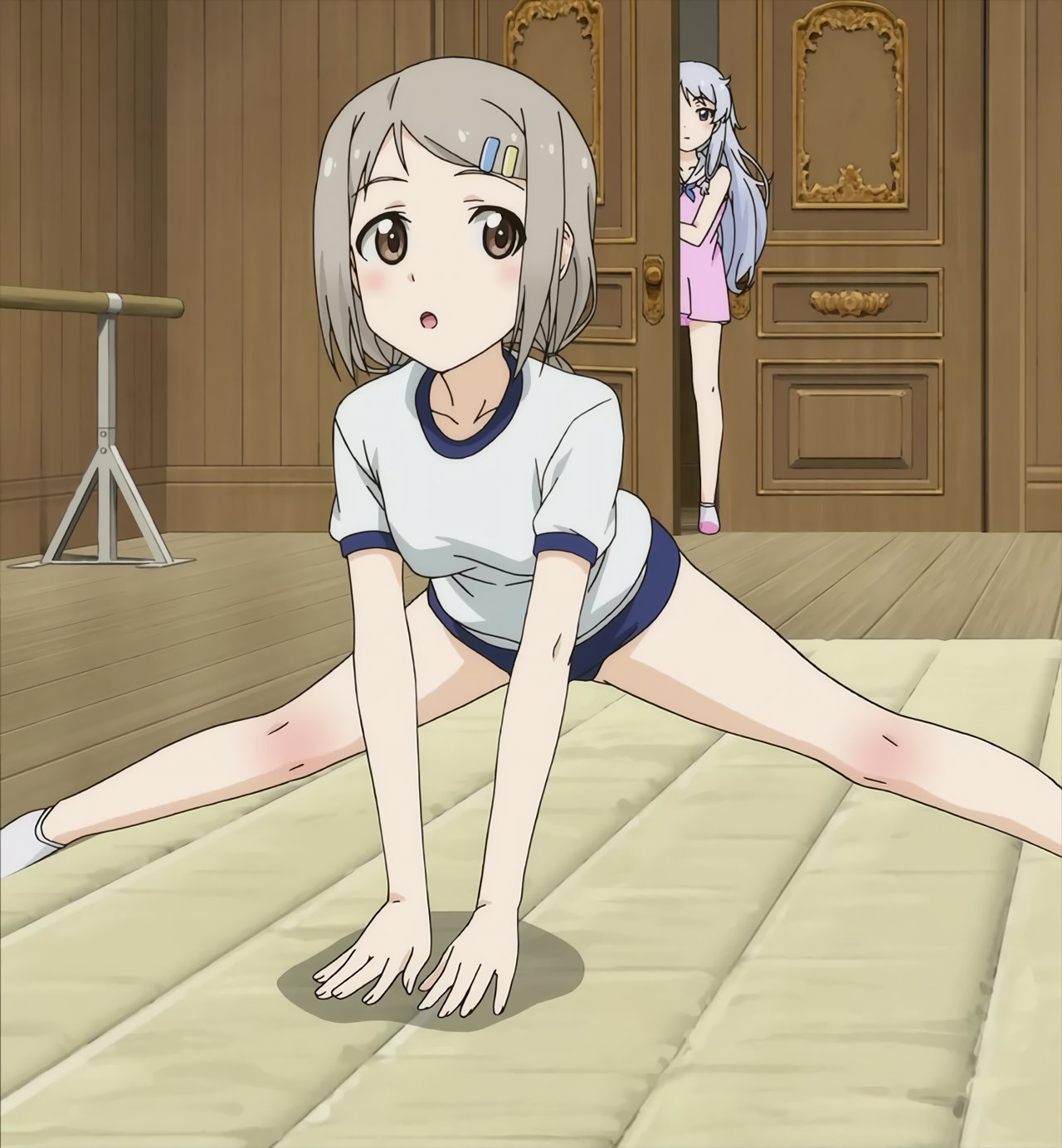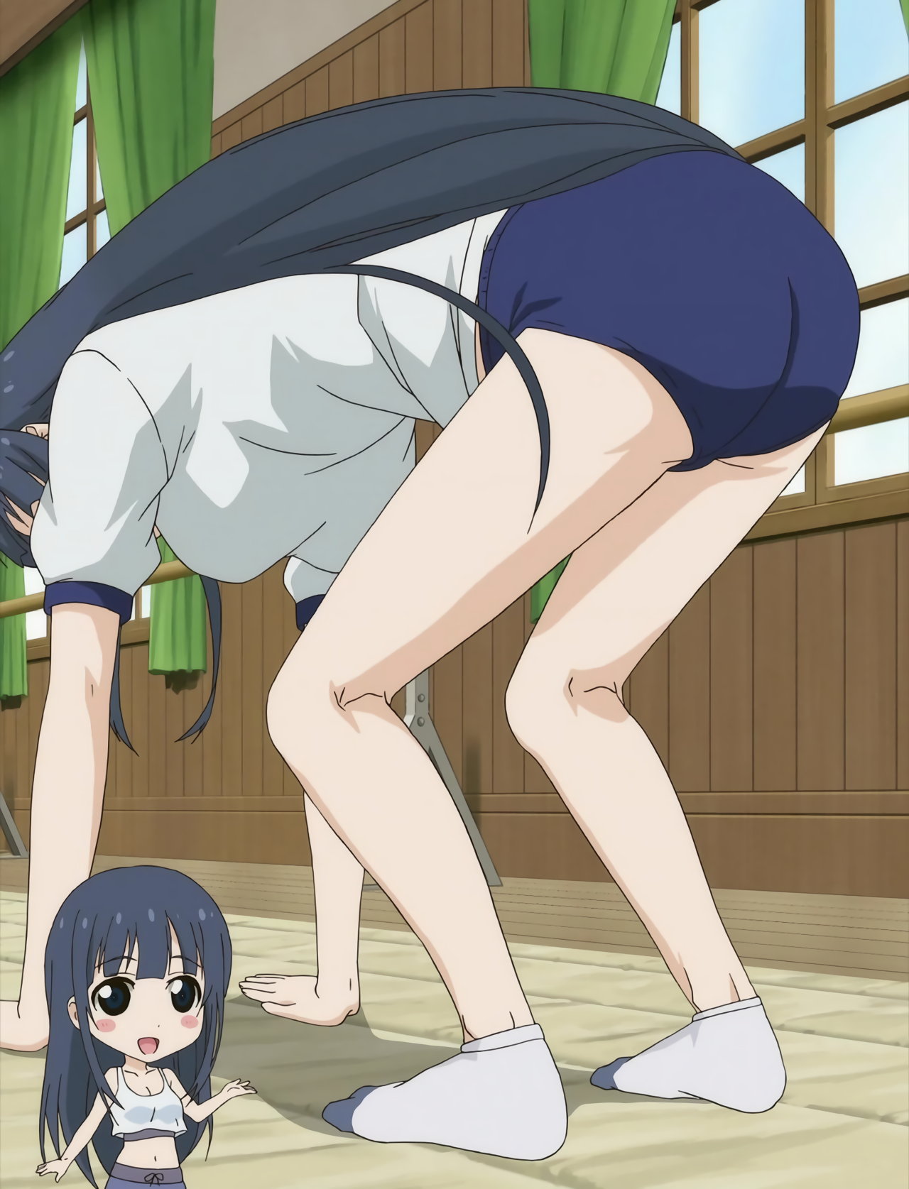 ブルマ体操服を着てマット運動をする、静乃・優。