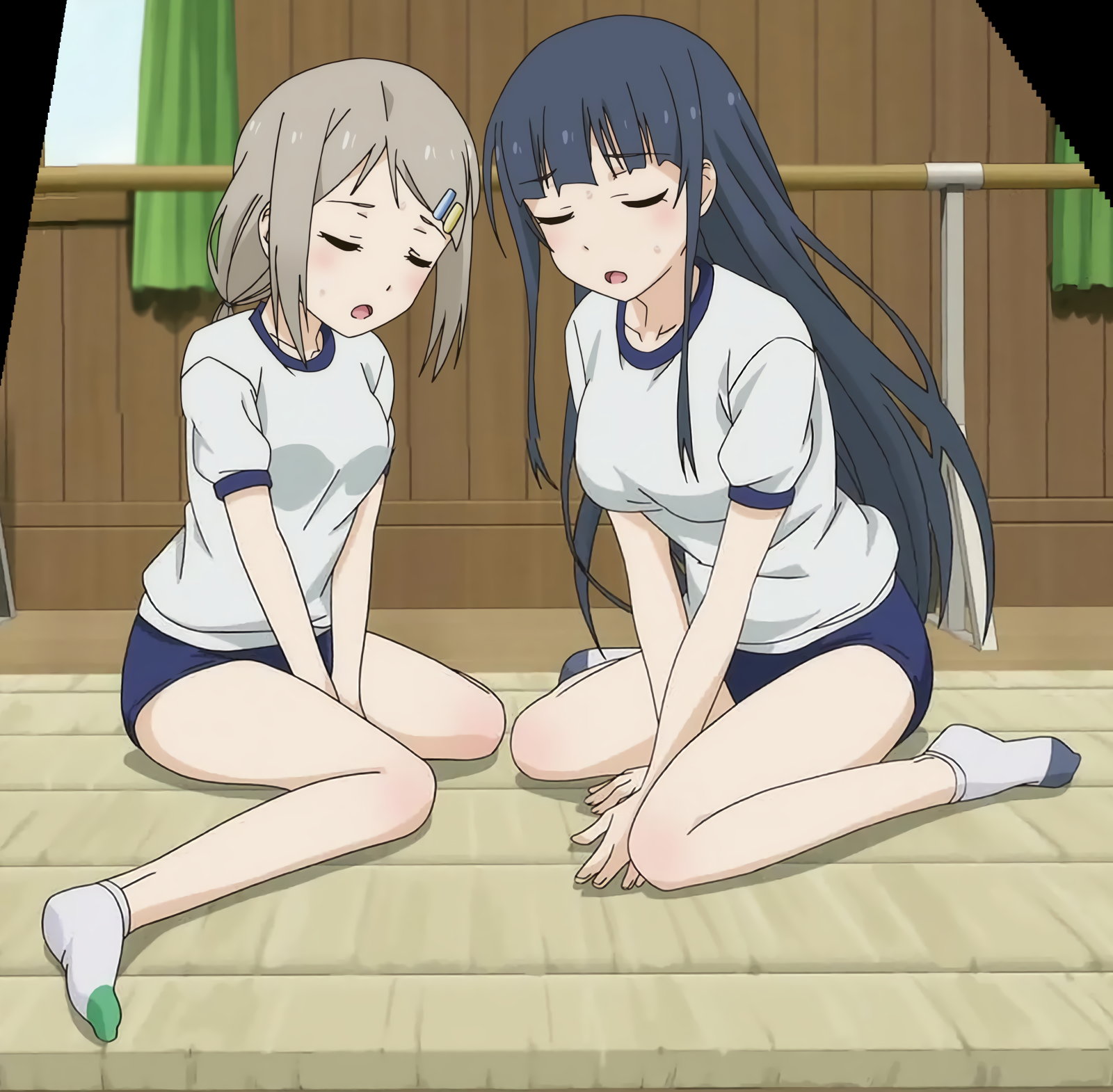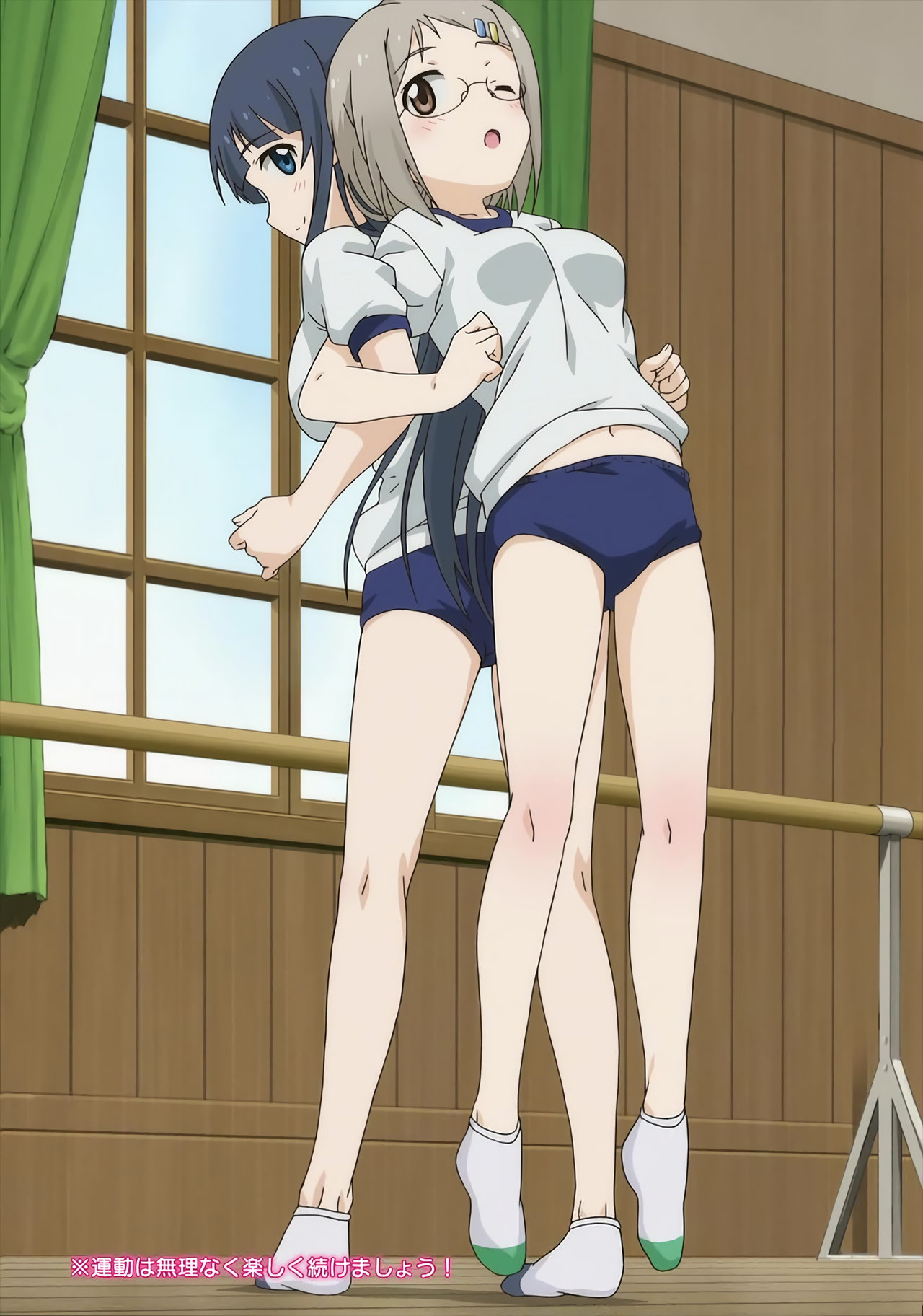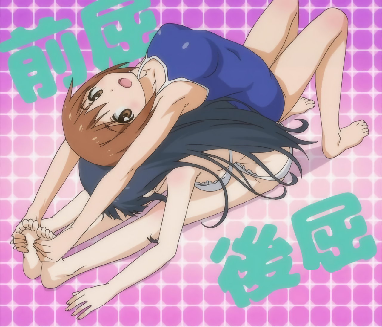 柔軟体操中の、あさみ・静乃。