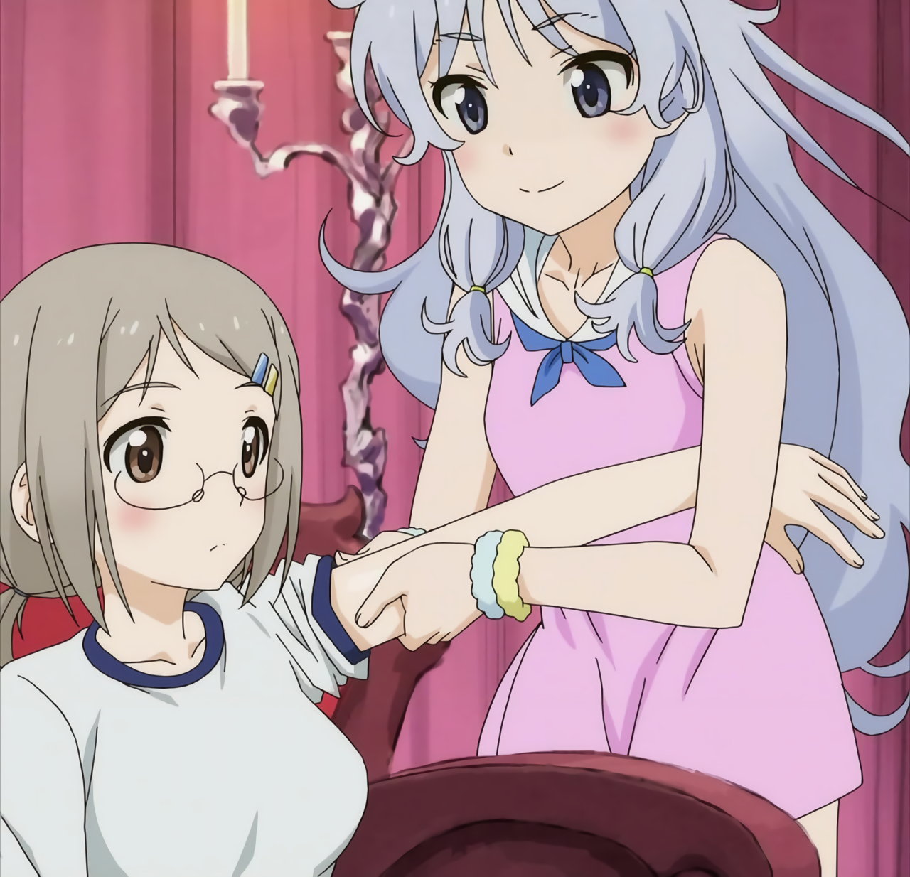 あさみの乳房の成長ぶりに劣等感を抱くえり。