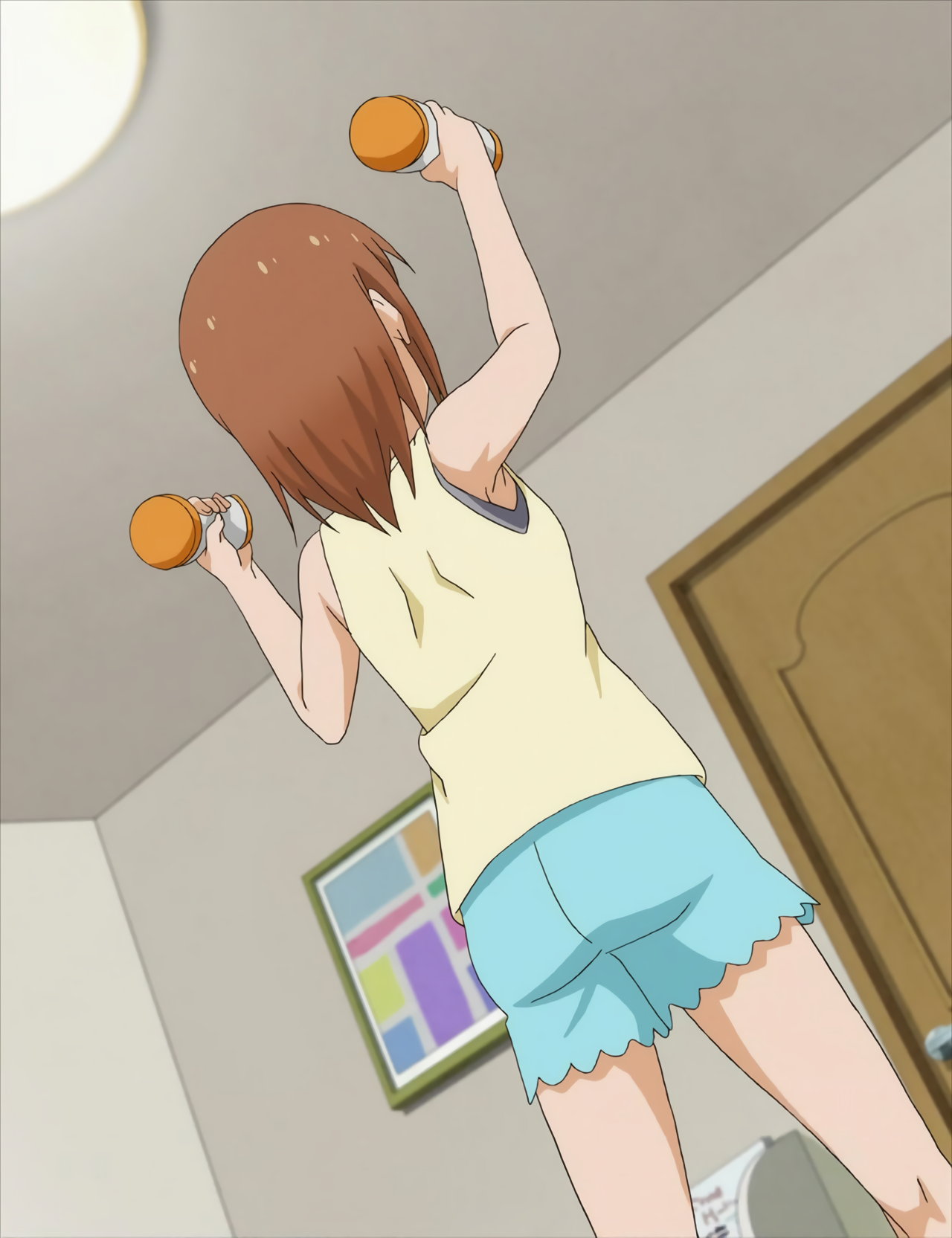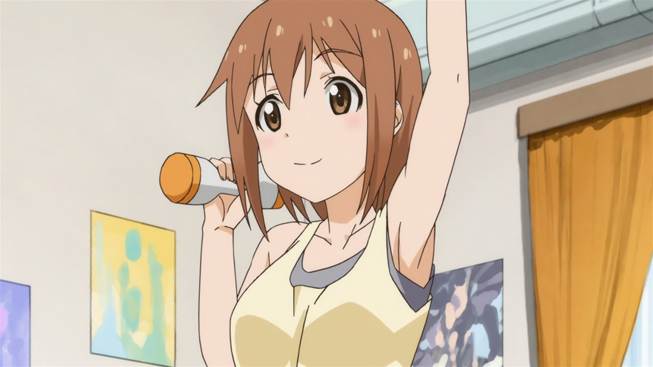 腋チラしつつダンベル体操する、あさみ。