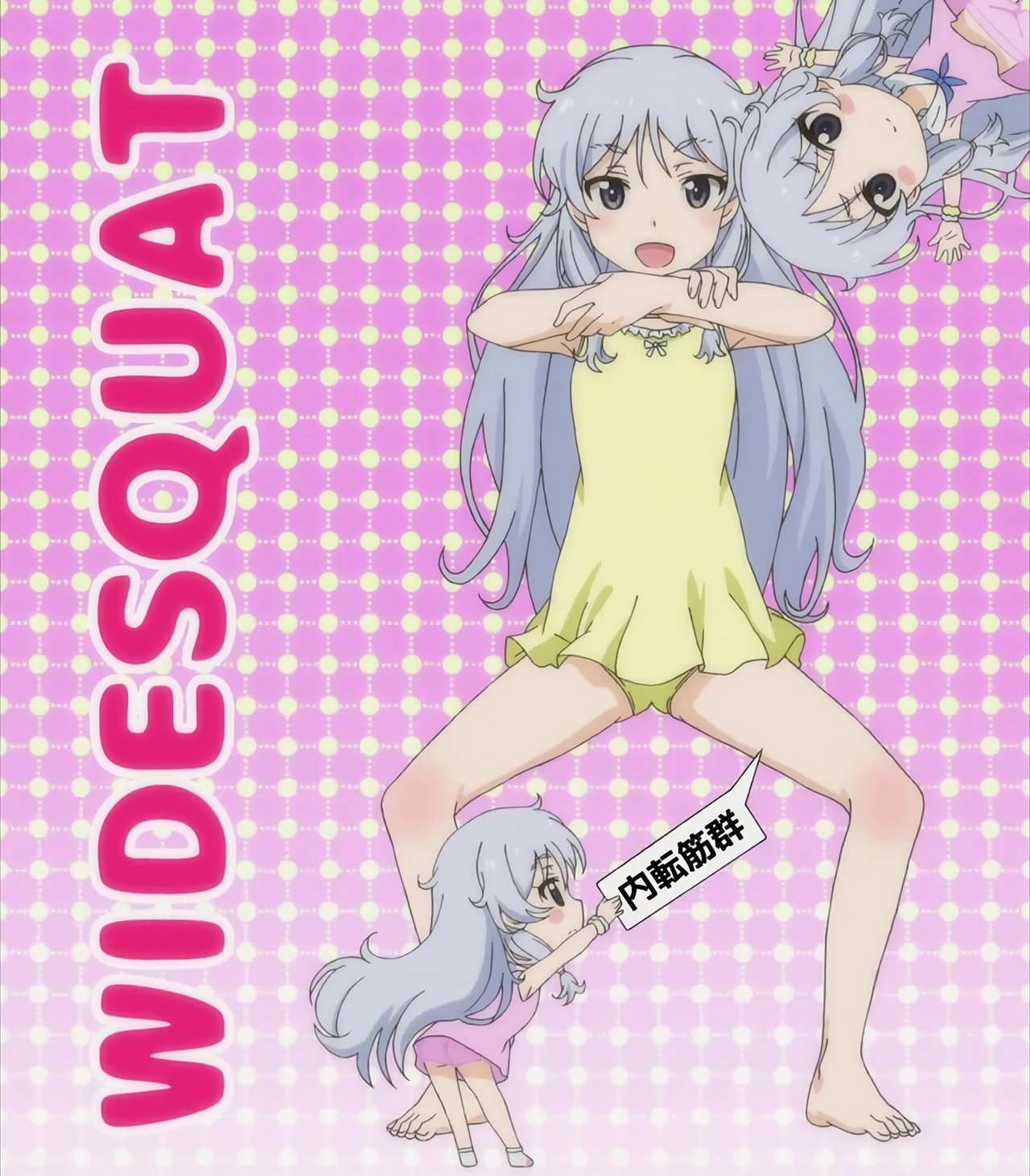 股を広げ、ワイドスクワット運動をするさくら。