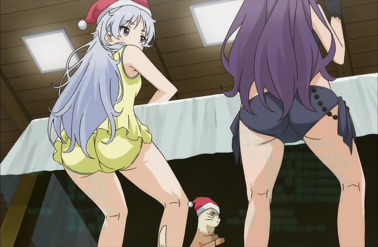水着姿でクリスマスパーティーをするヒロインたち。