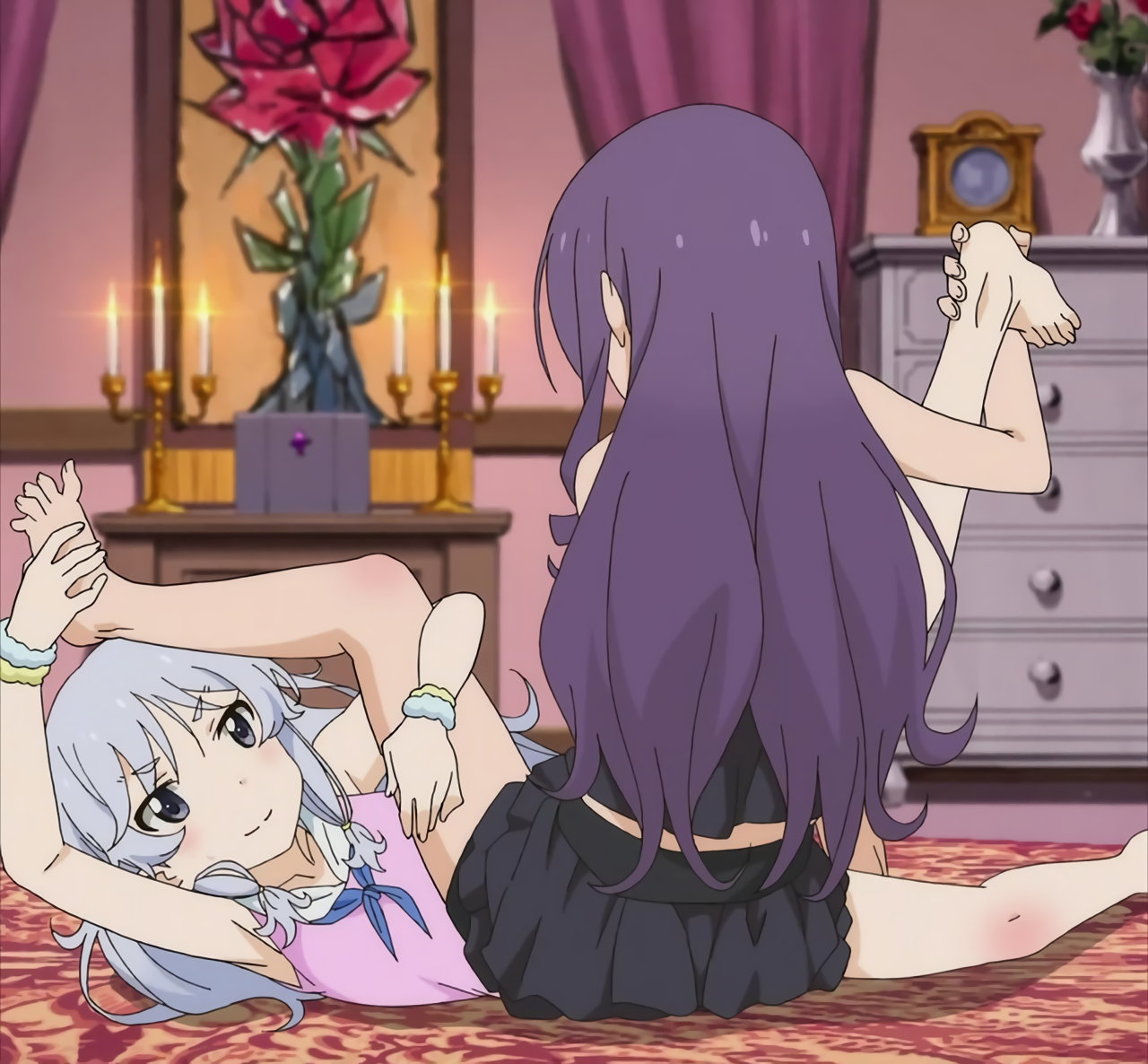 組んず解れつ足裏マッサージし合う、紫苑とさくら。