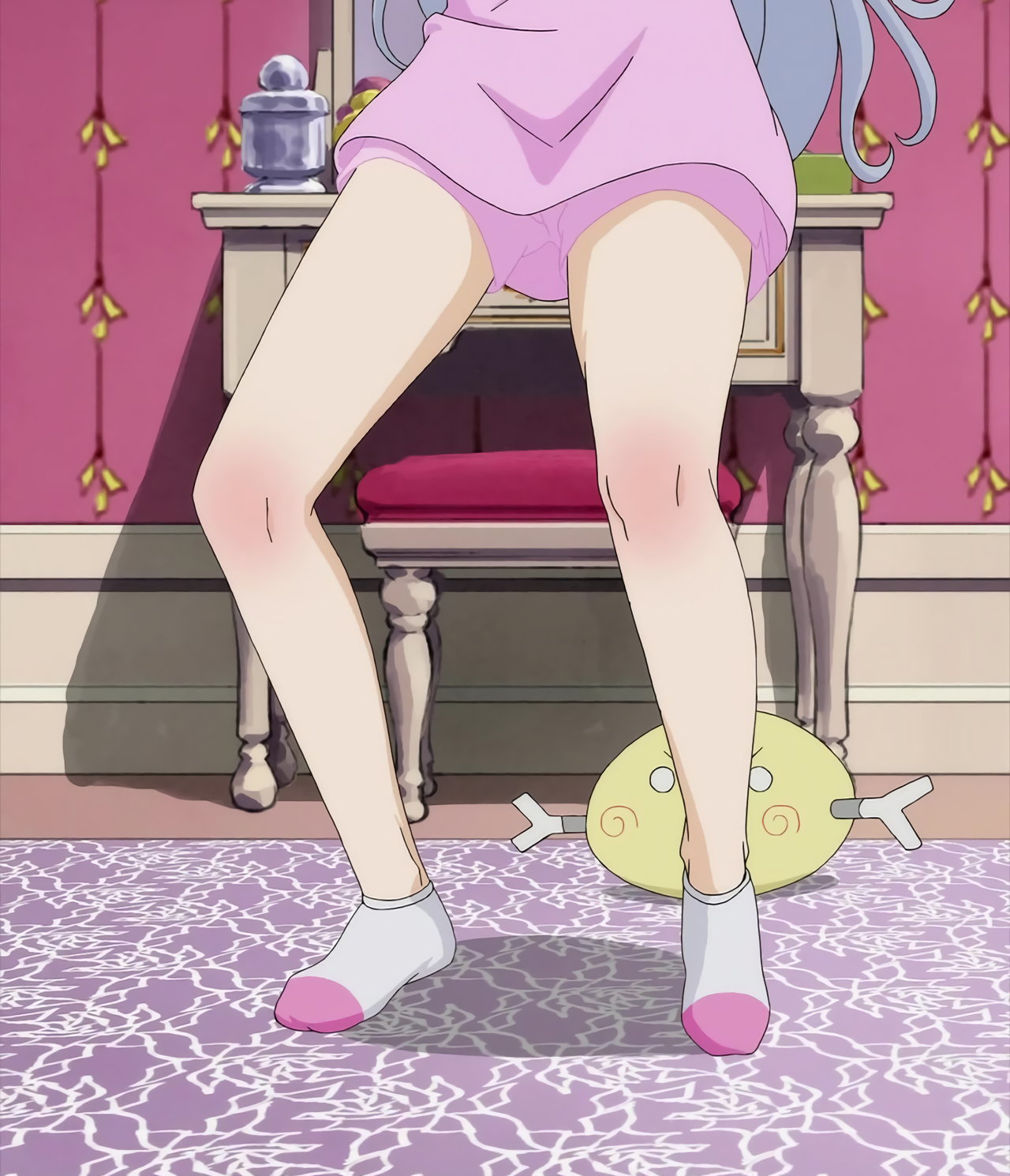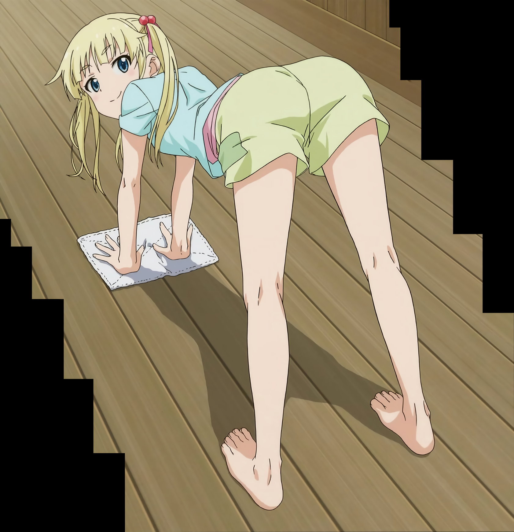 尻・生脚・裸足裏を見せつつ、雑巾掛けするえり。
