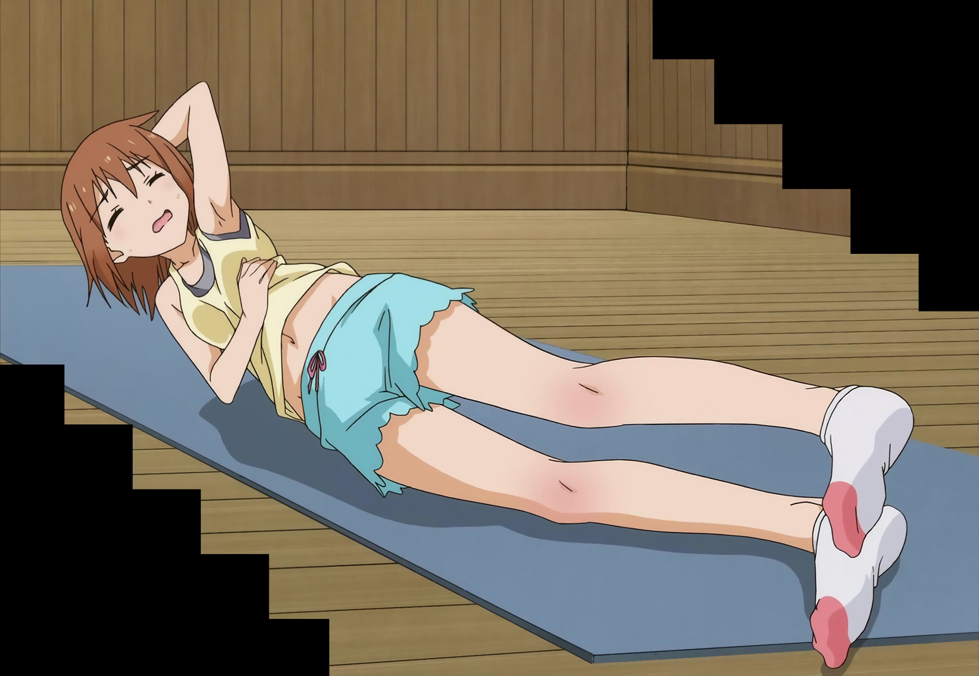 臍チラしつつ筋トレする、ブルマ体操服の優。
