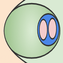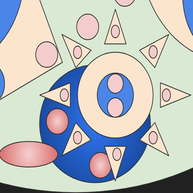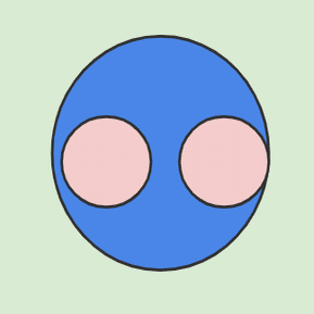 真面目に話すと、αグループの人達は自分の存在証明に一生懸命なだけだから、常に相手がいる必要はないっていうか、少なくとも監視の目とかいう意識はないと思う。そこがδグループの人達との違い。だから、それぞれの青の中にピンクのやつらが一匹以上いるように描いてみた。誰かを監視したり監視されたりすることで真価を発揮する人達。