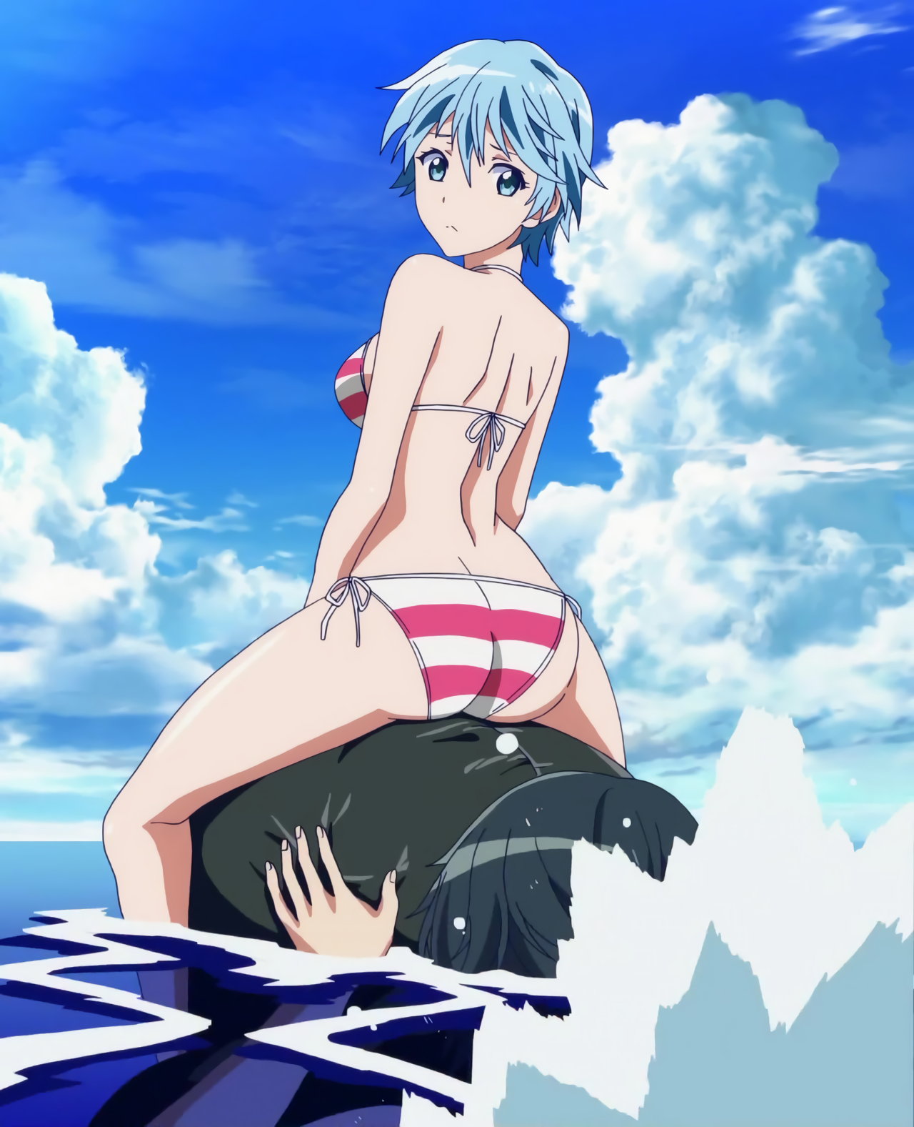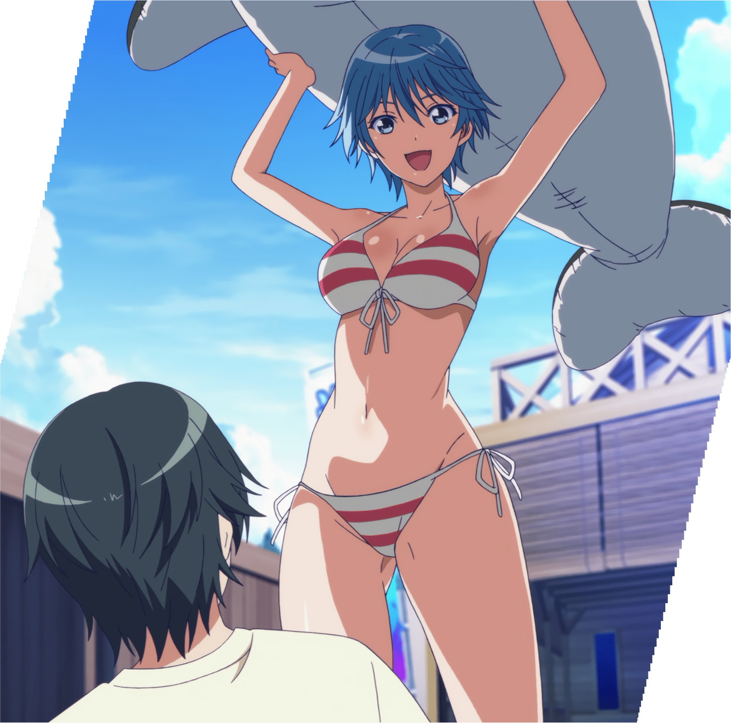 縞模様・紐ビキニ水着姿の風夏。