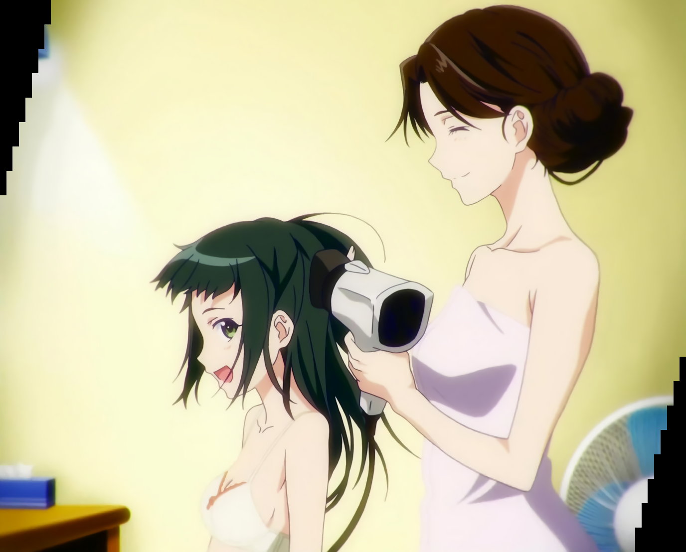 入浴・シャワーシーンにて湯気が薄くなり、女子たちの尻と乳首が解禁されている。