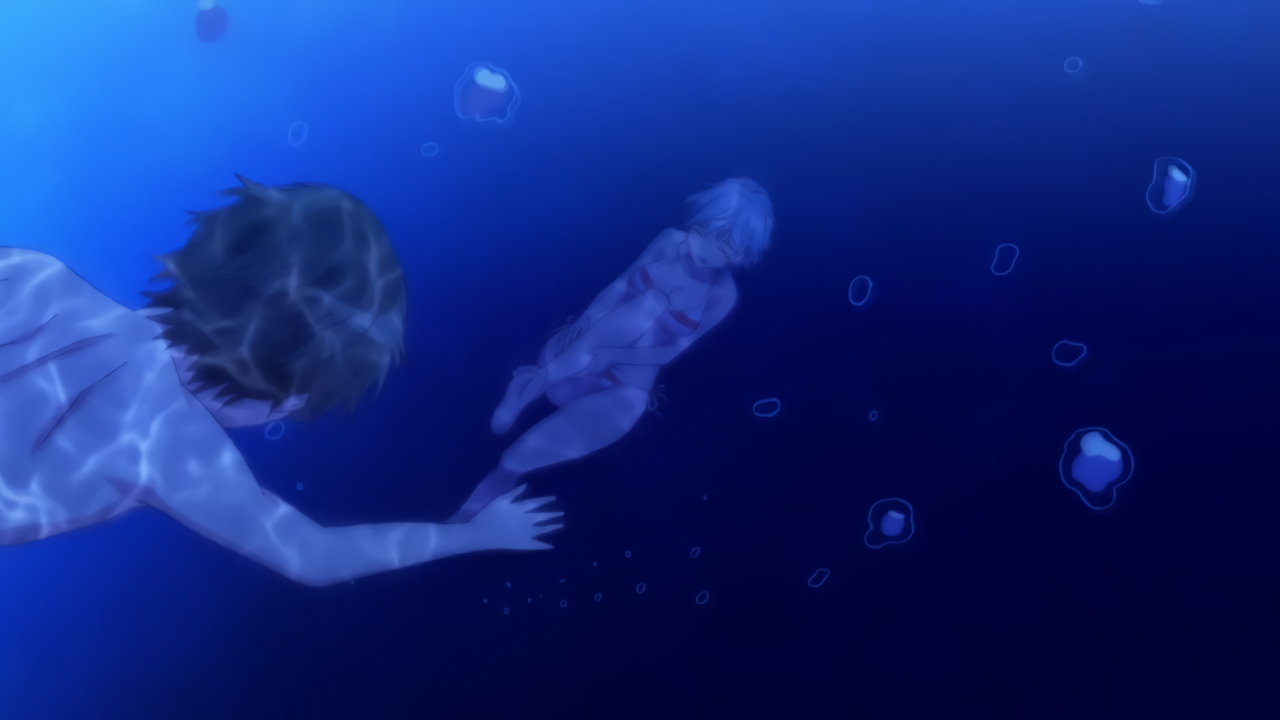 海に沈む風夏を救助しようとする優。しかし、自分の方が溺れてしまう。