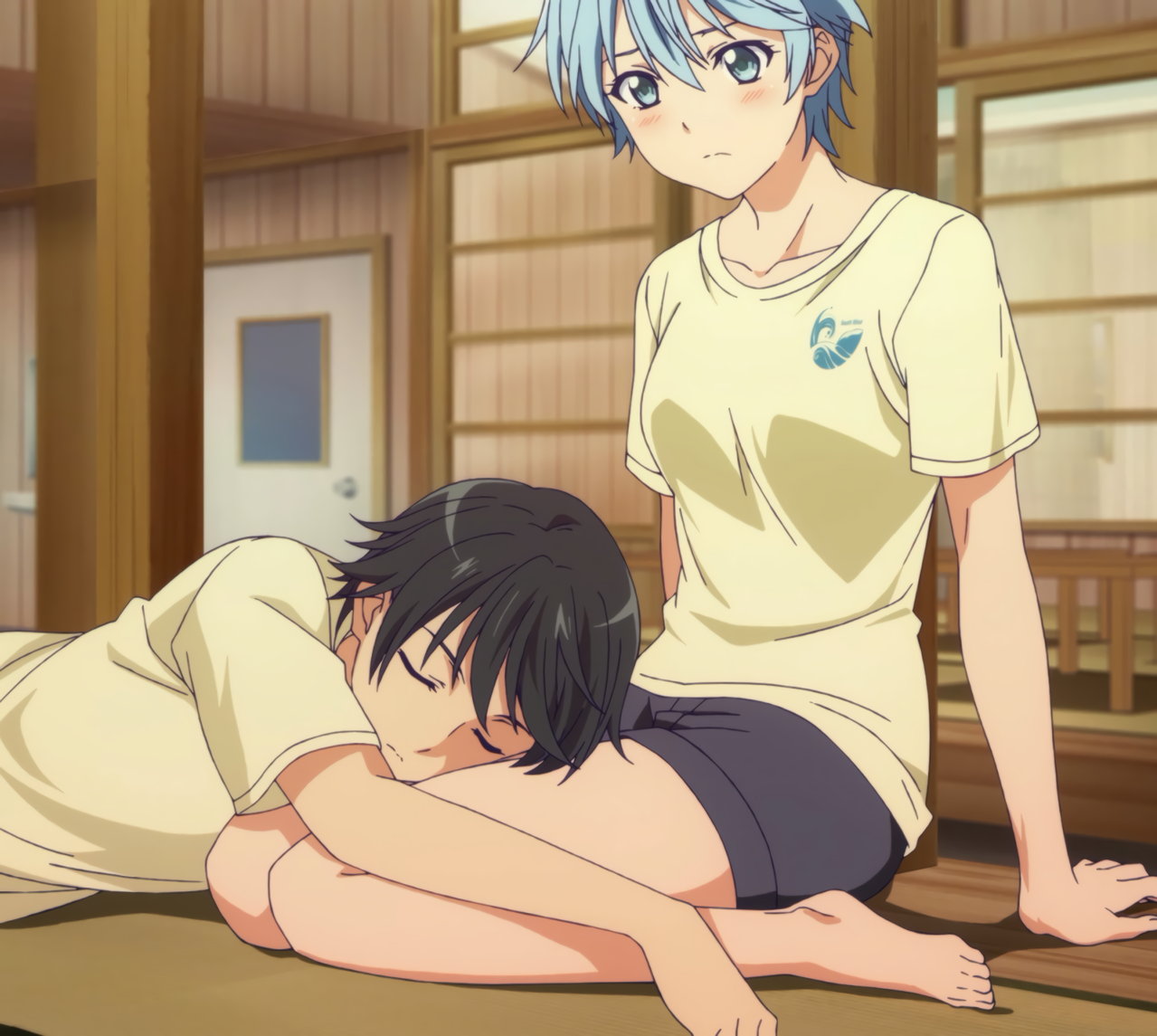 優を膝枕する風夏。
