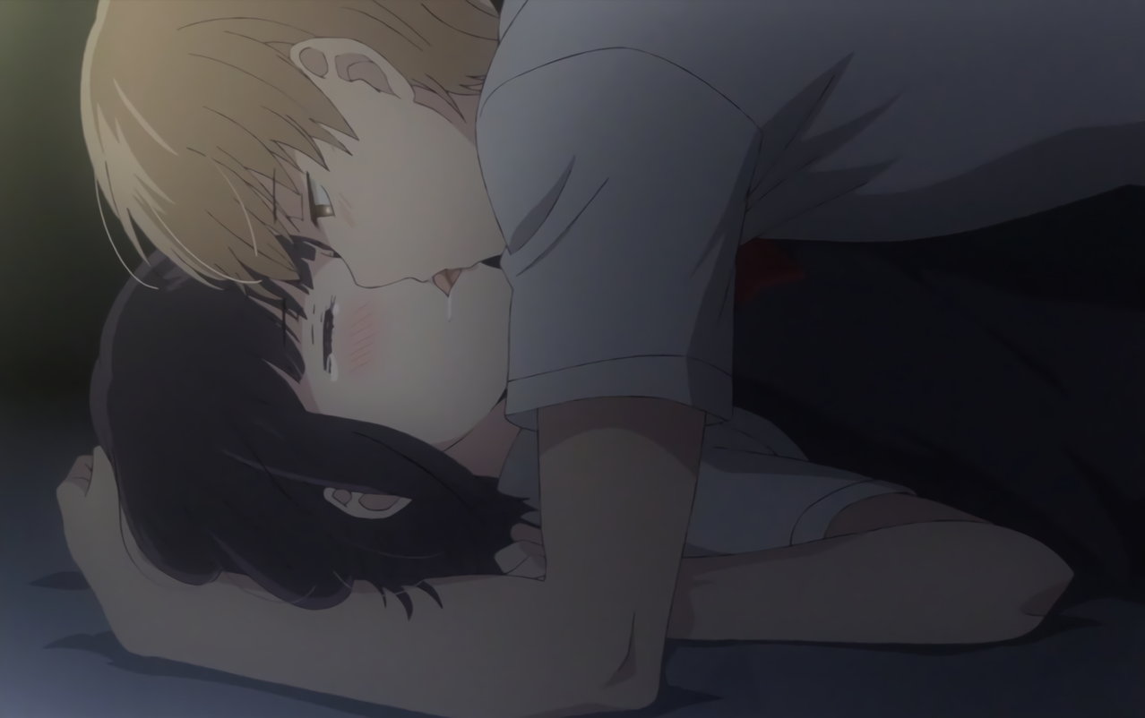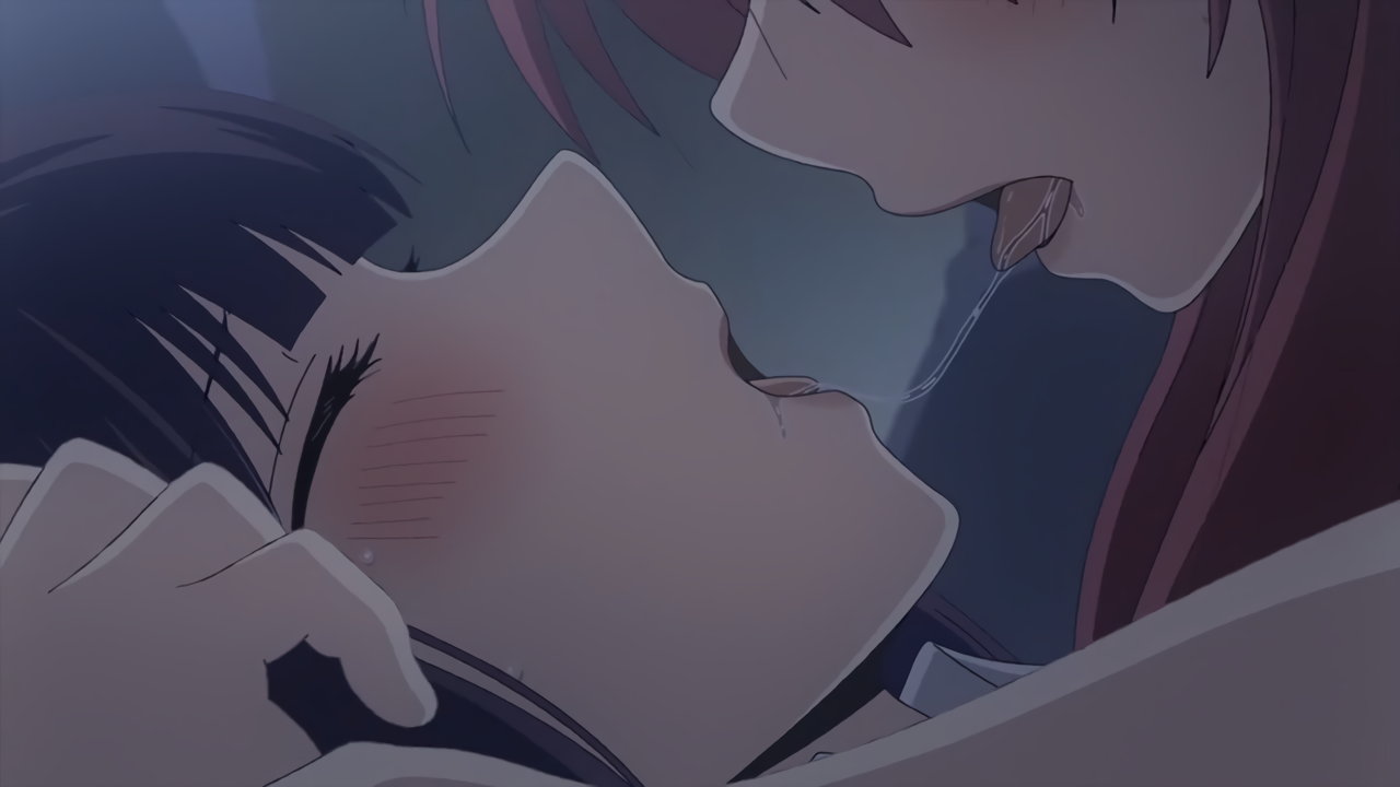 舌絡みキスする、鳴海と茜。