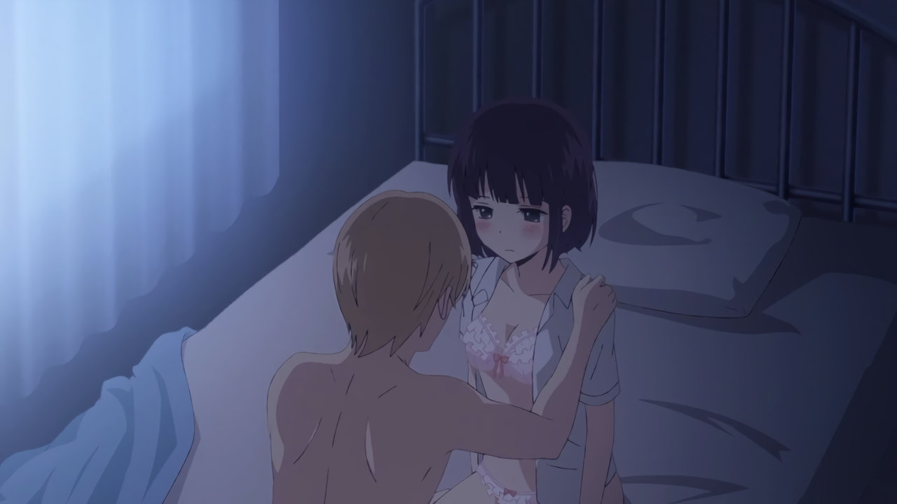 ラブホにて麦と性交する、下着姿の芽衣。