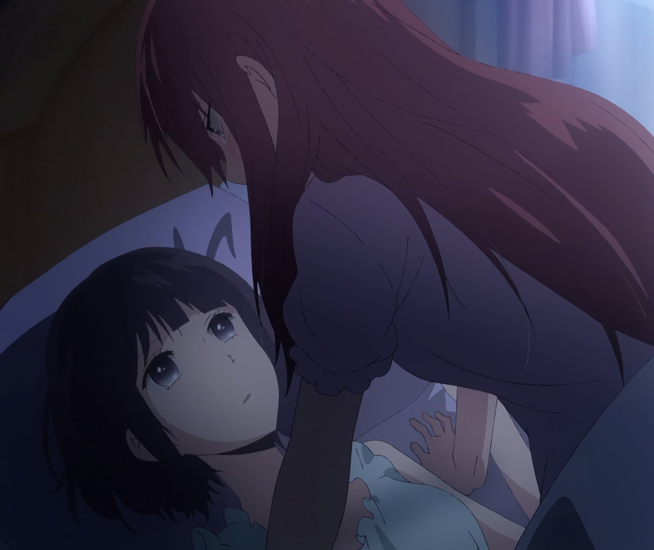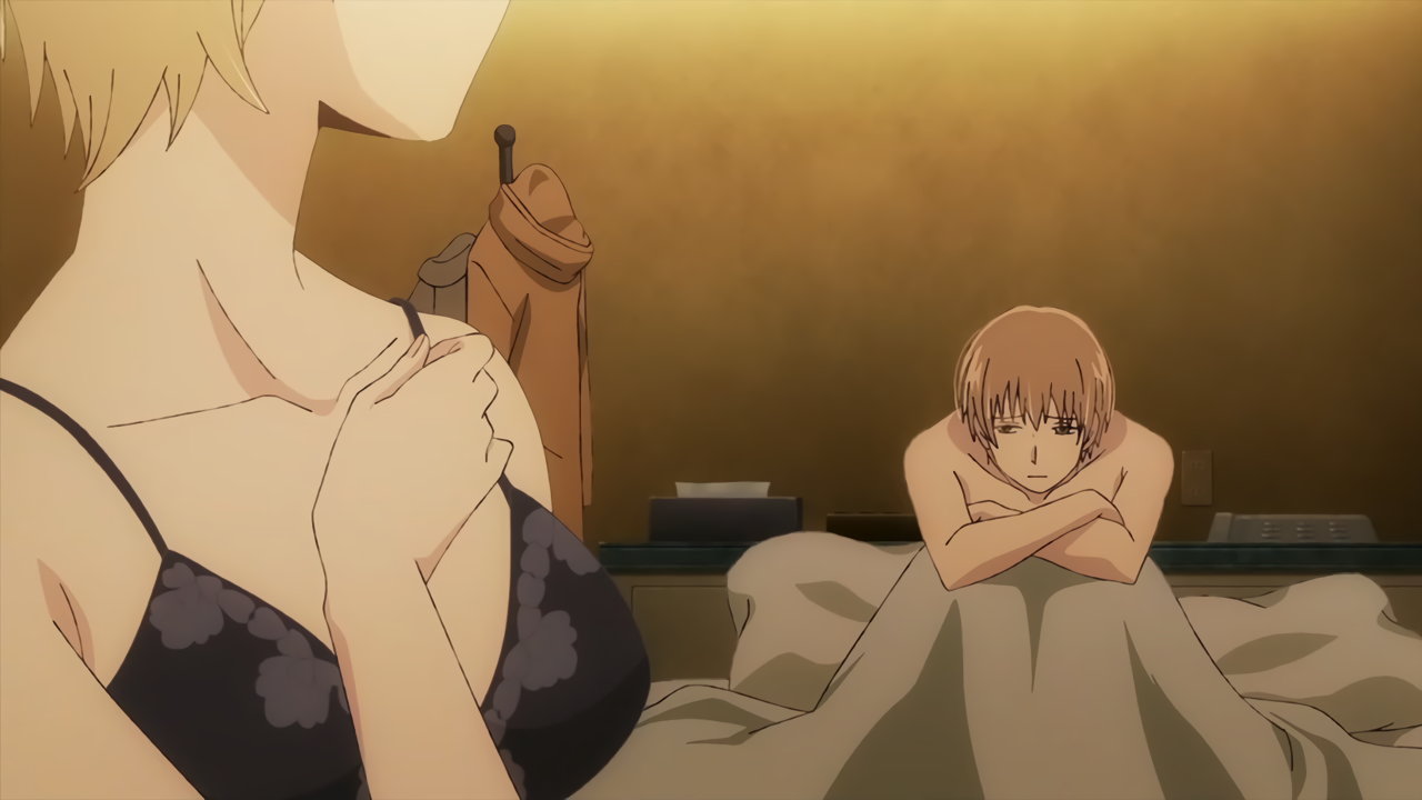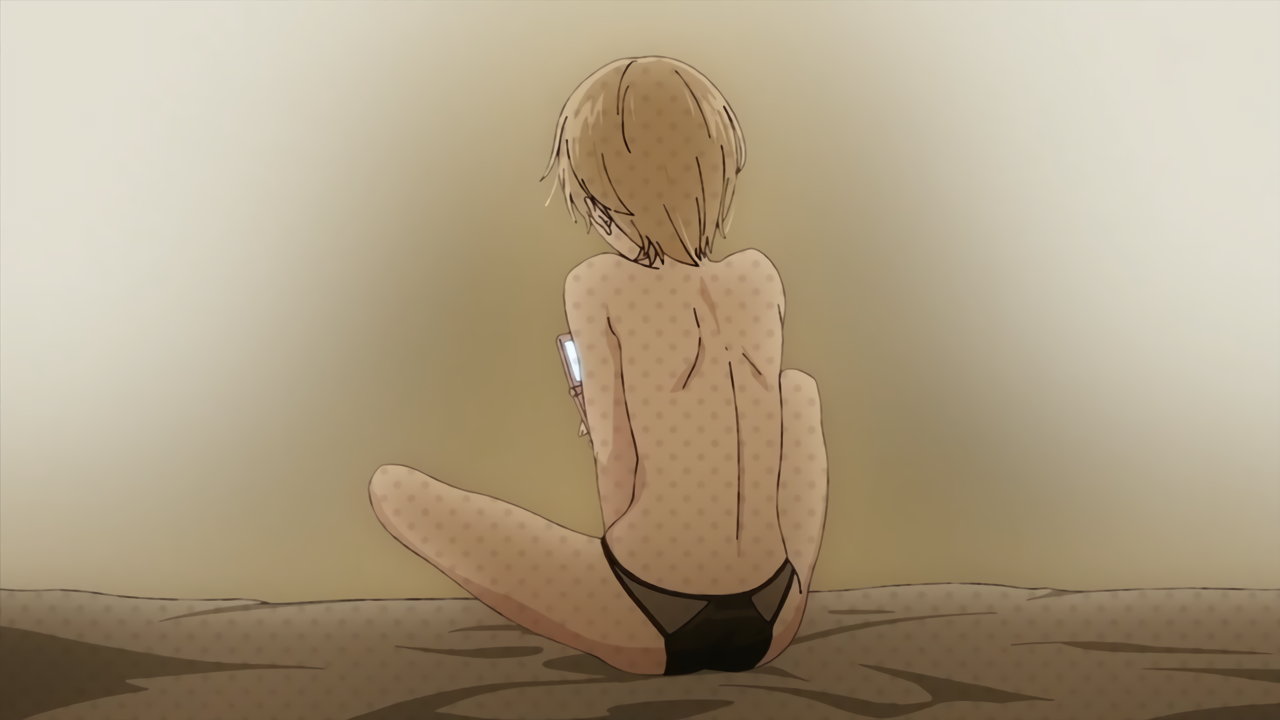 麦と性交しようとする、半裸の花火。しかし、未遂に終わる。