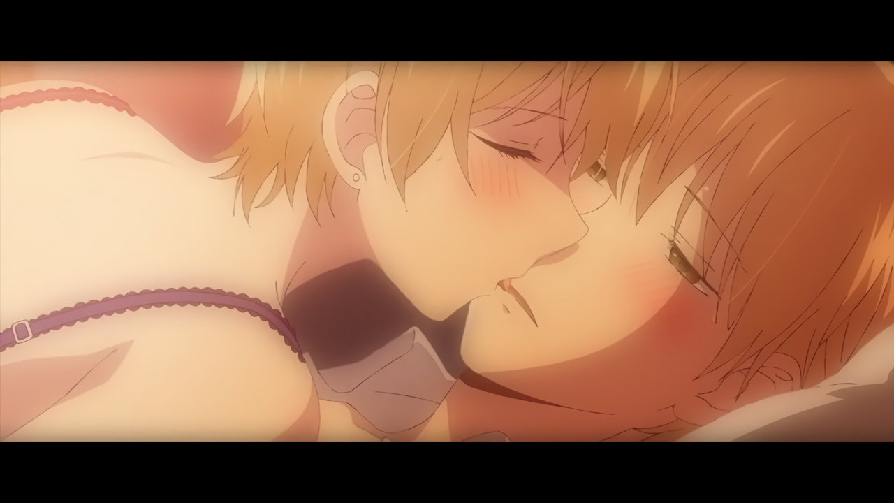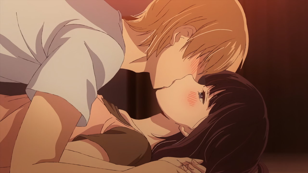麦に押し倒され、キスされる花火。