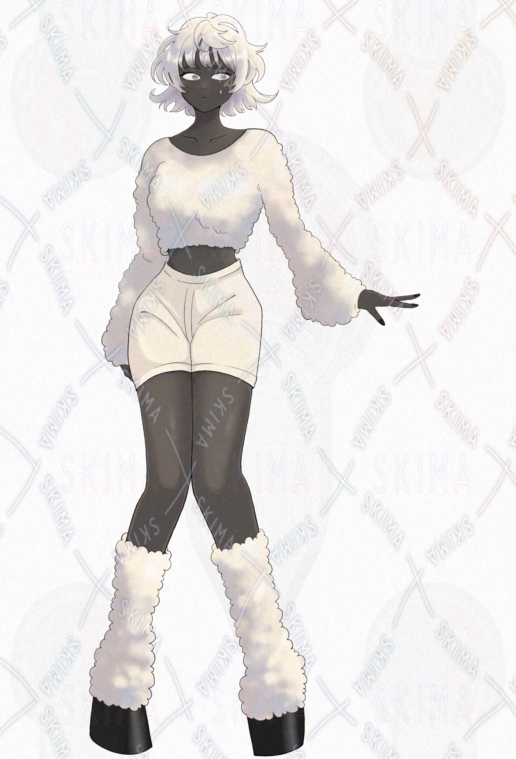 現代/ファンタジー/羊/白髪/銀髪/癖毛/蹄/もこもこ/太眉