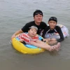 남호가 타고 있는 짱구는 못말려 튜브는 남호가 입으로 바람 불어넣었는데... 이번 증도 여행을 마지막으로 은퇴....
