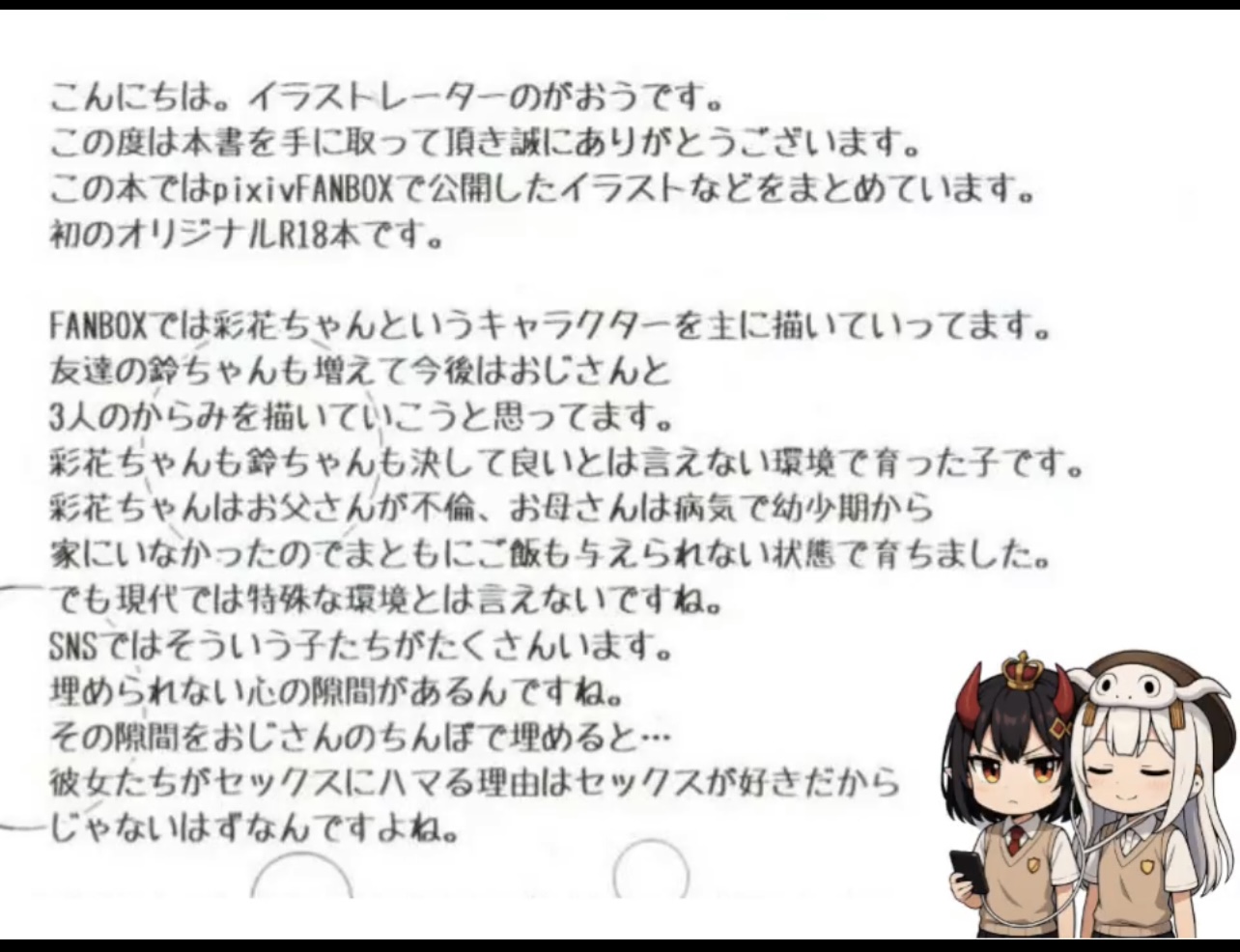そういえば大昔別のロリ漫画家が親からの愛情が不足してそうなのはやりやすいとか言ってたっスね