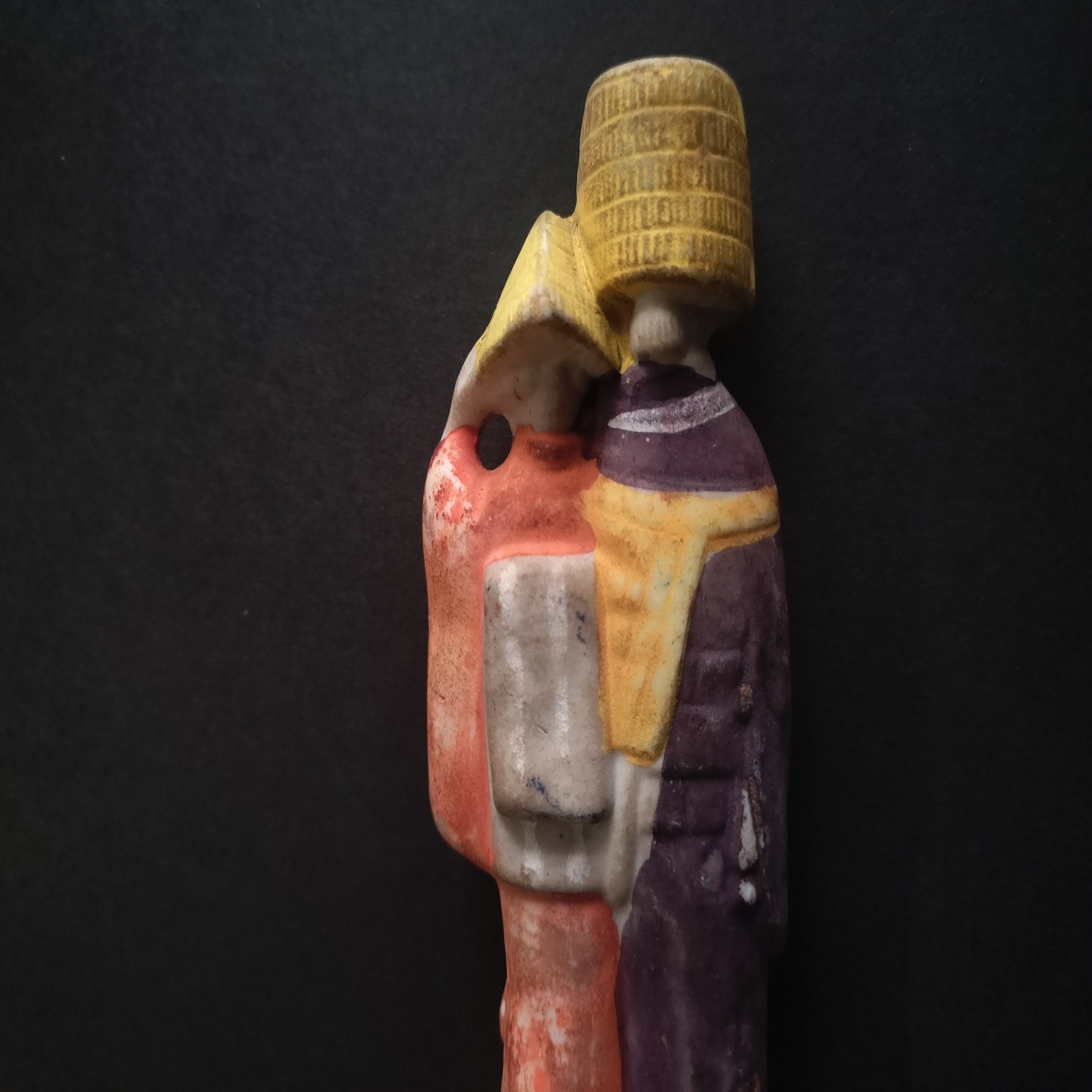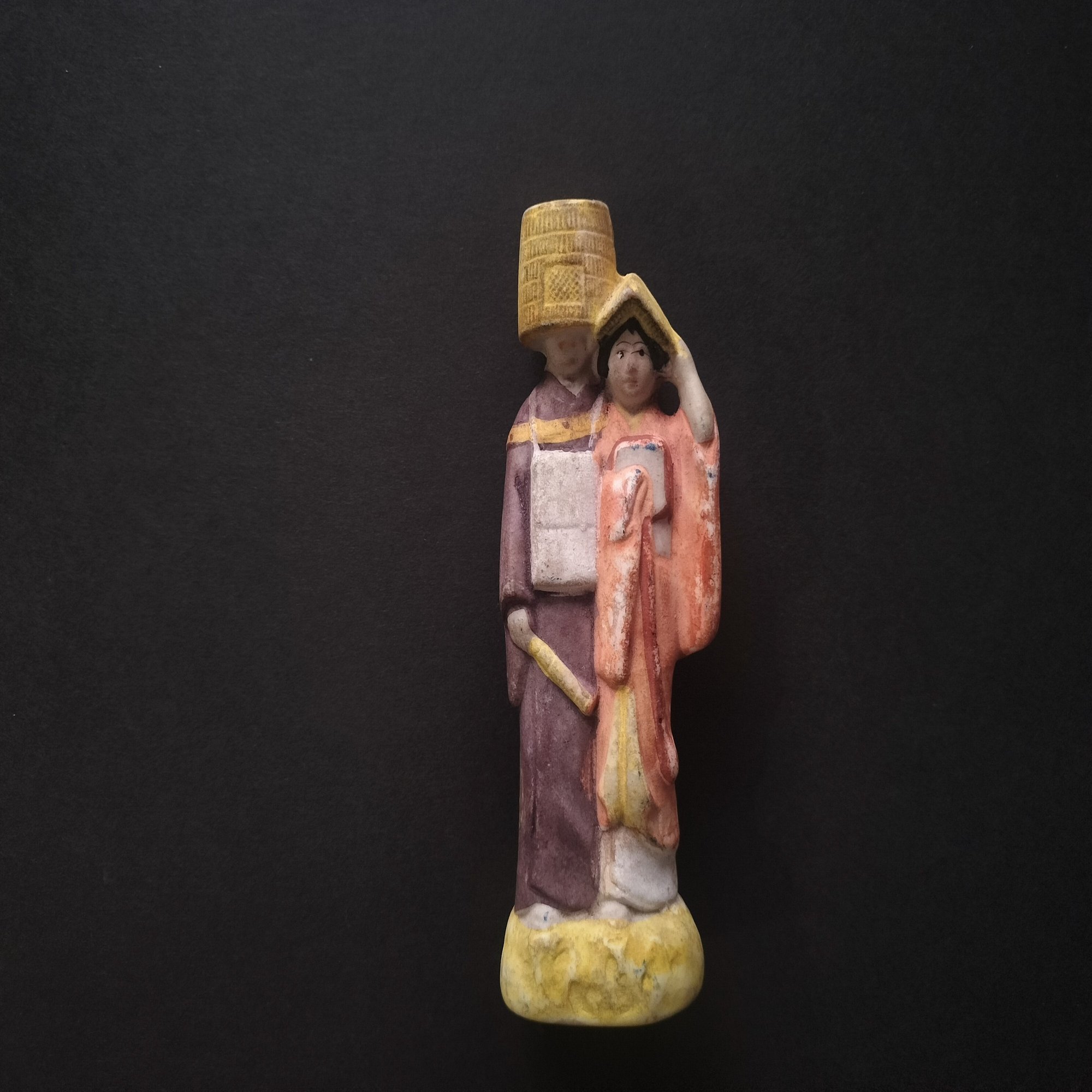 すっかり着色が剥がれていますが、金色も少し残っているので、着物に柄模様があったのだと想像します。