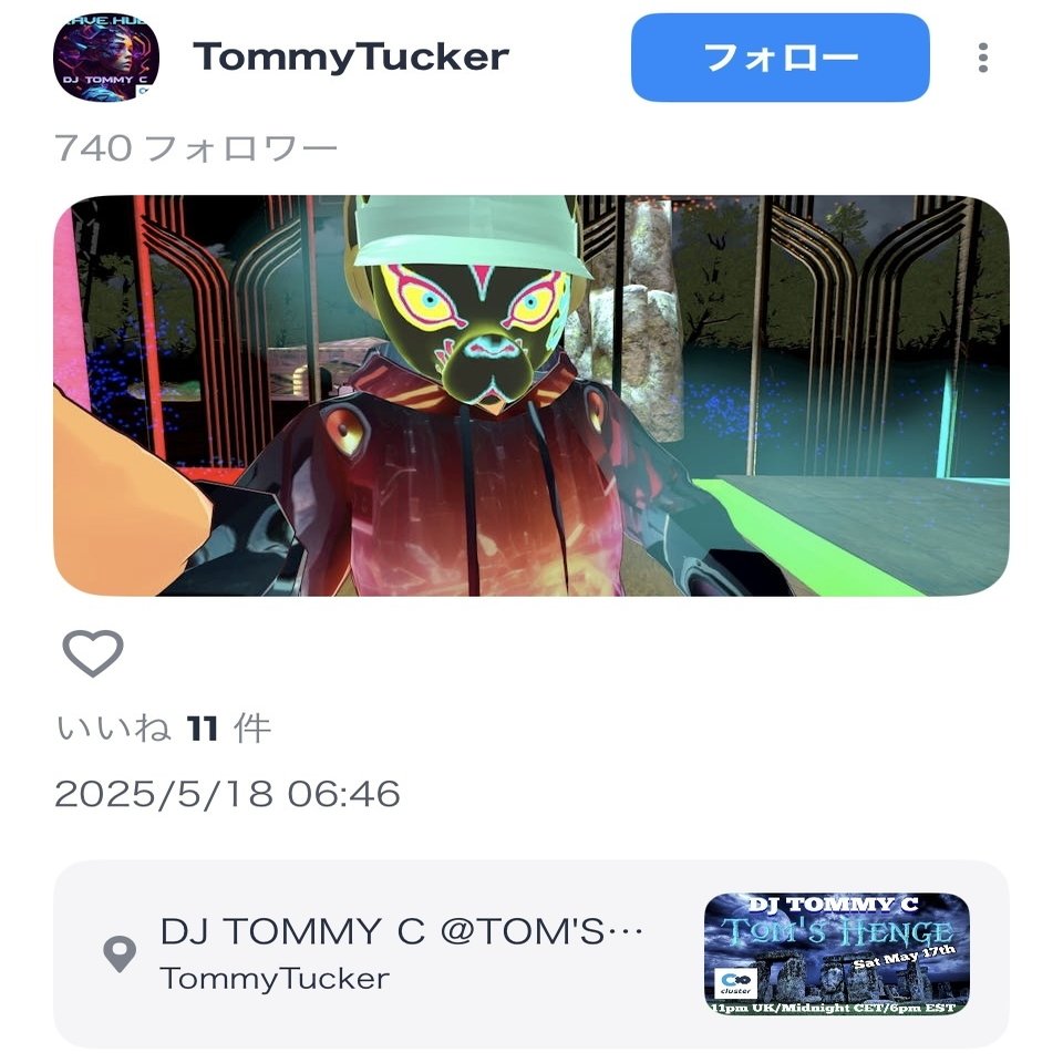 TommyTucker:イギリス出身のDJ。Clusterで多数のイベントを主催