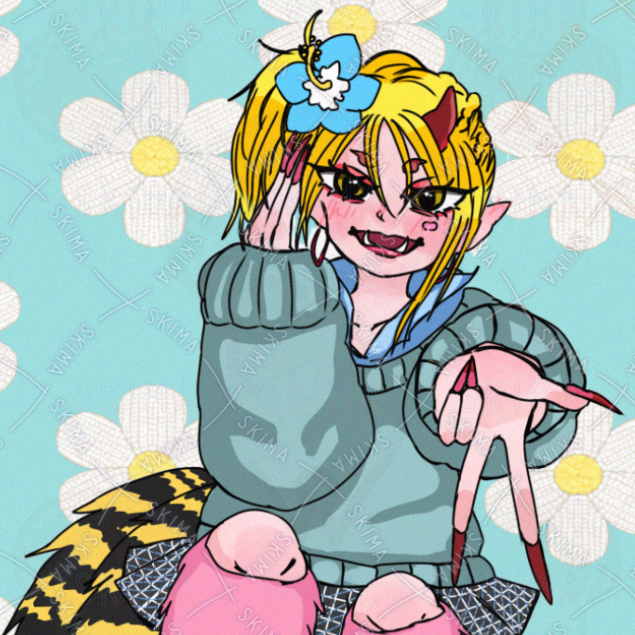 赤鬼と平成ぎゃるJKをMIXした可愛い女の子を描いたオリジナルイラストです。SNSのアイコンやその他用途、ご自由にお使いください。