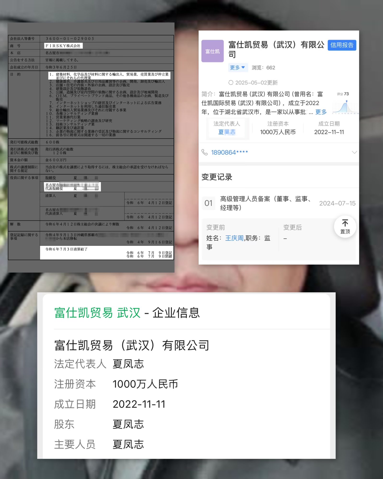 The record of Firsky's activities listed online shows that there are many intersections with Amarvel. At Chinese subsidiary Firsky International Trade (Wuhan), which said it was "a 100% Japanese-owned company," the auditor resigned in July 2024. That auditor had the same name as one of the Amarvel executives found guilty in the US.